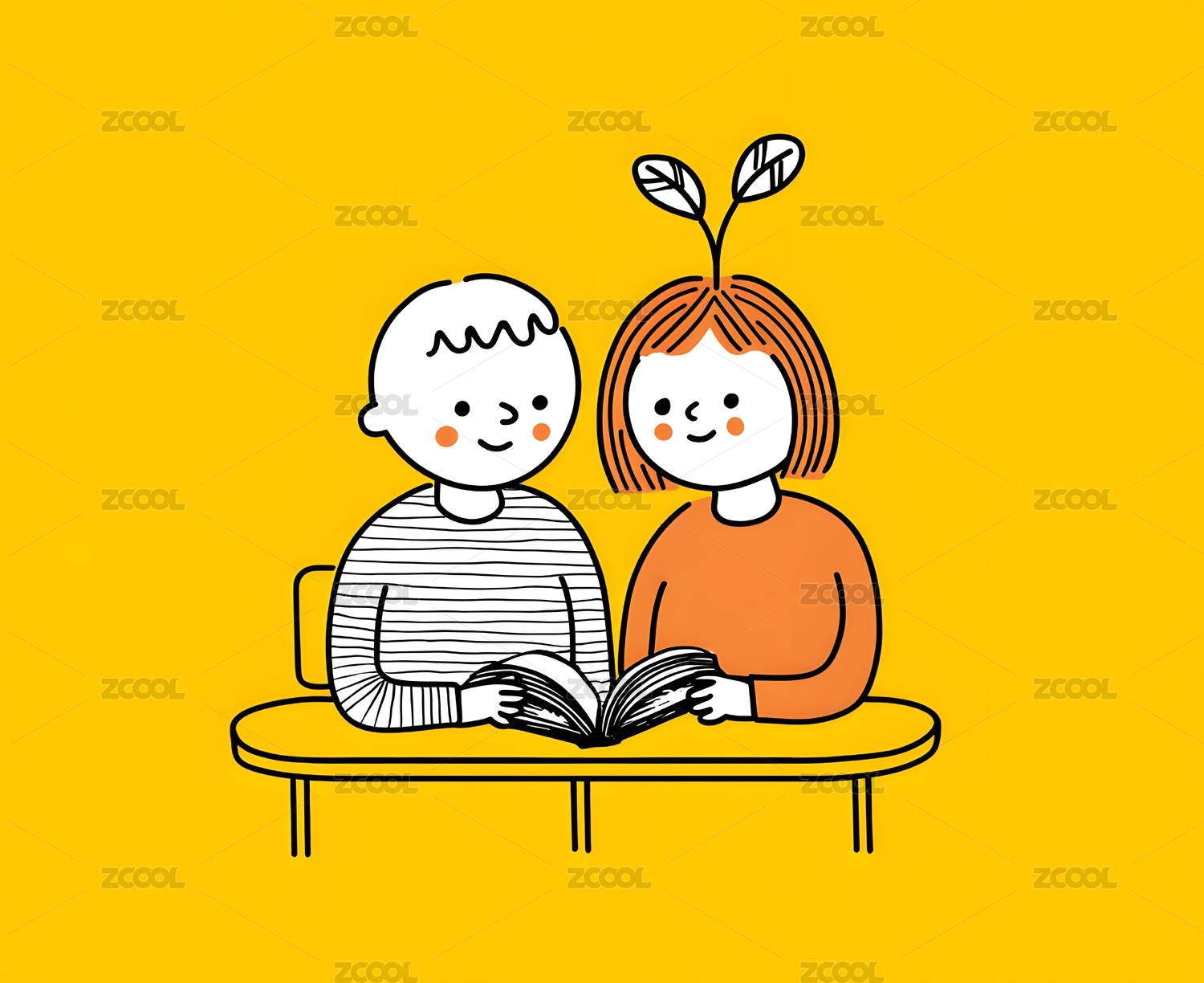 孩童读书温馨时光 黄色背景