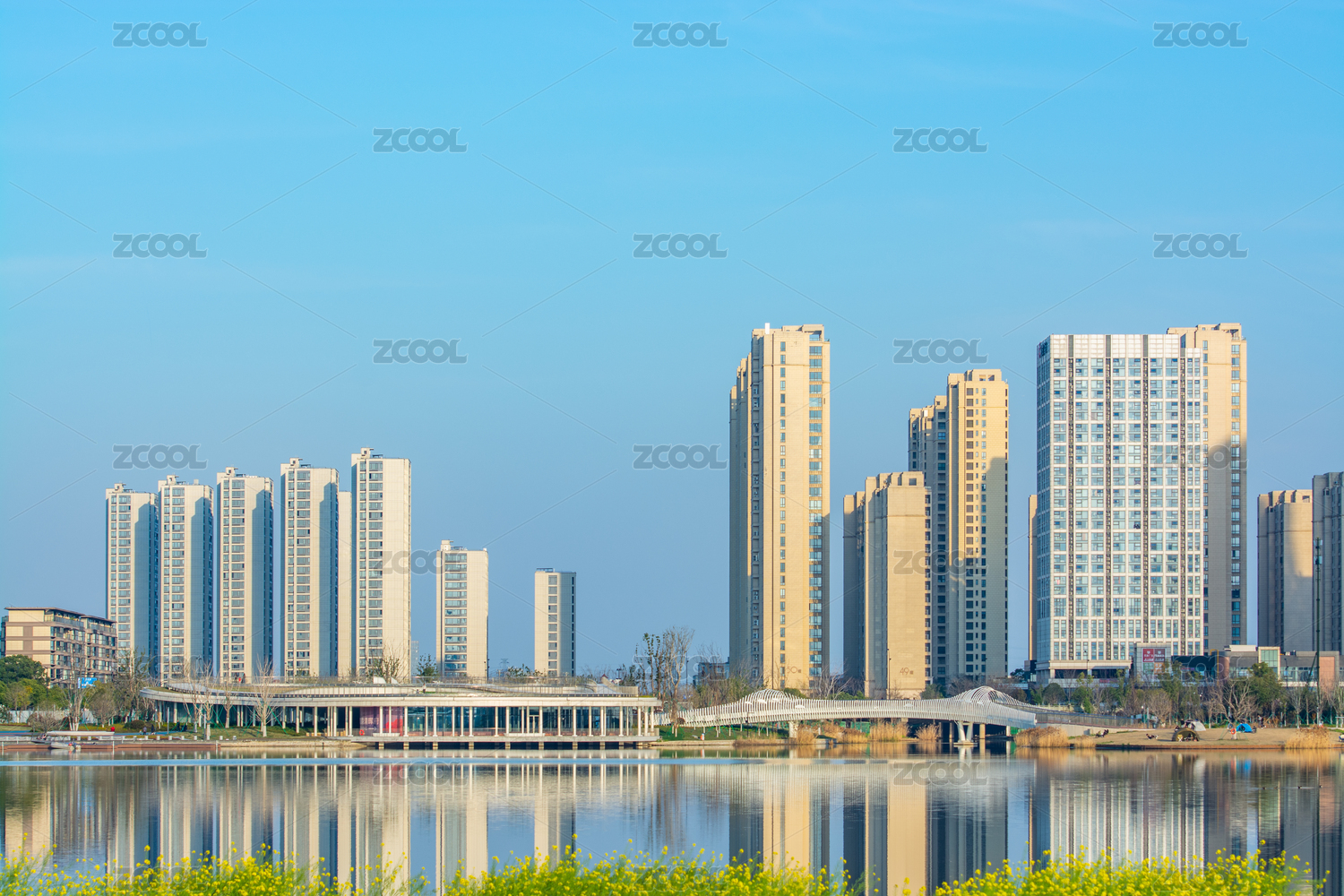 浙江杭州钱塘区大江东东沙湖公园畔建筑风景