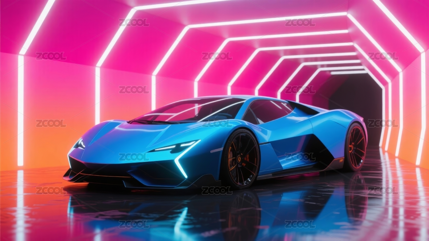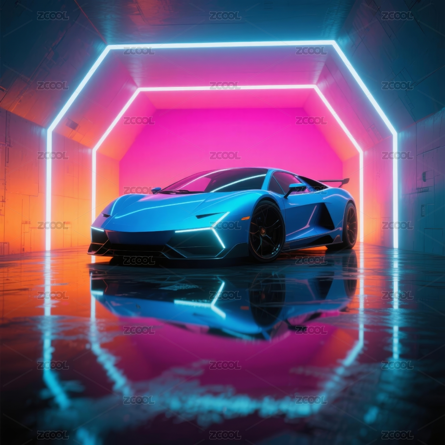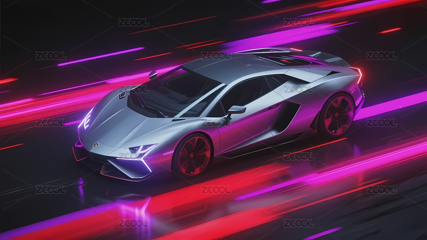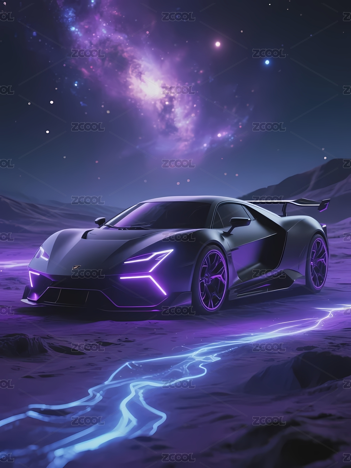 蓝紫色兰博基尼跑车 夜幕氛围渲染