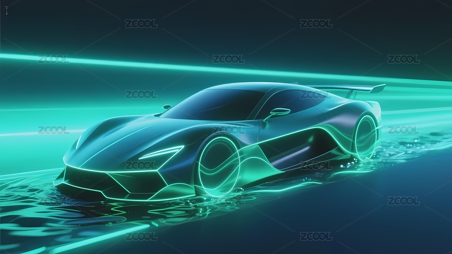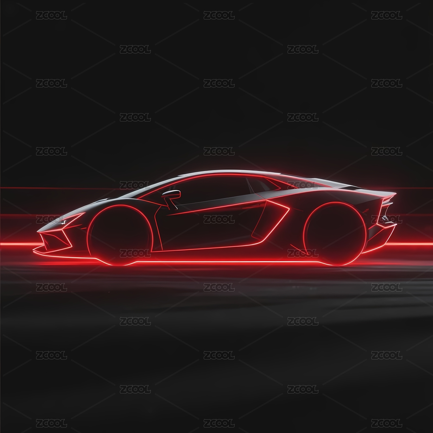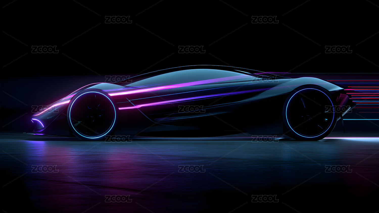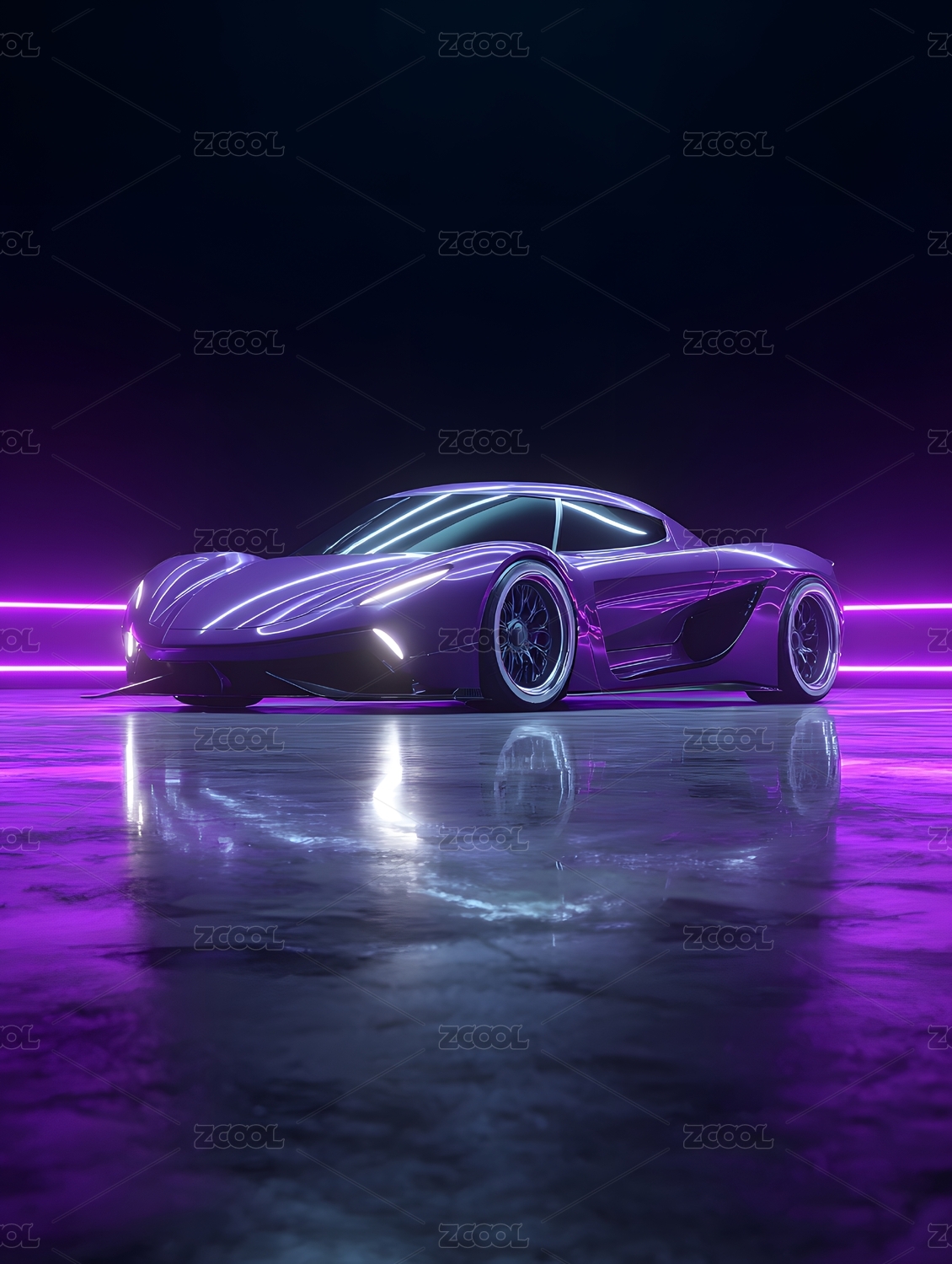 蓝紫色兰博基尼跑车 夜幕氛围渲染