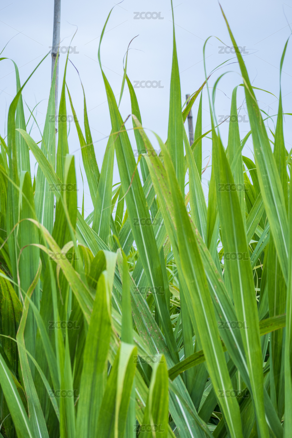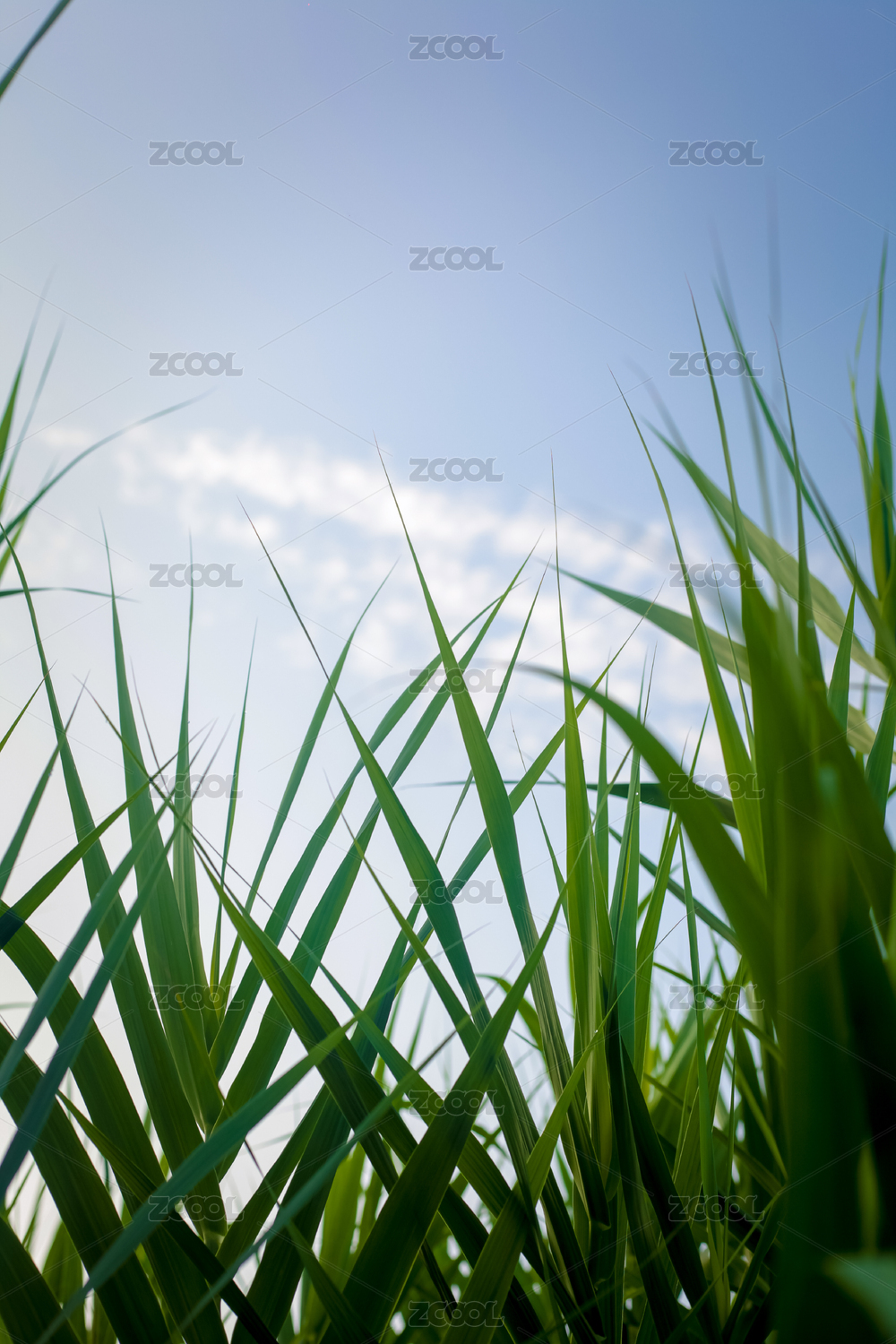 仰视水稻秧苗特写