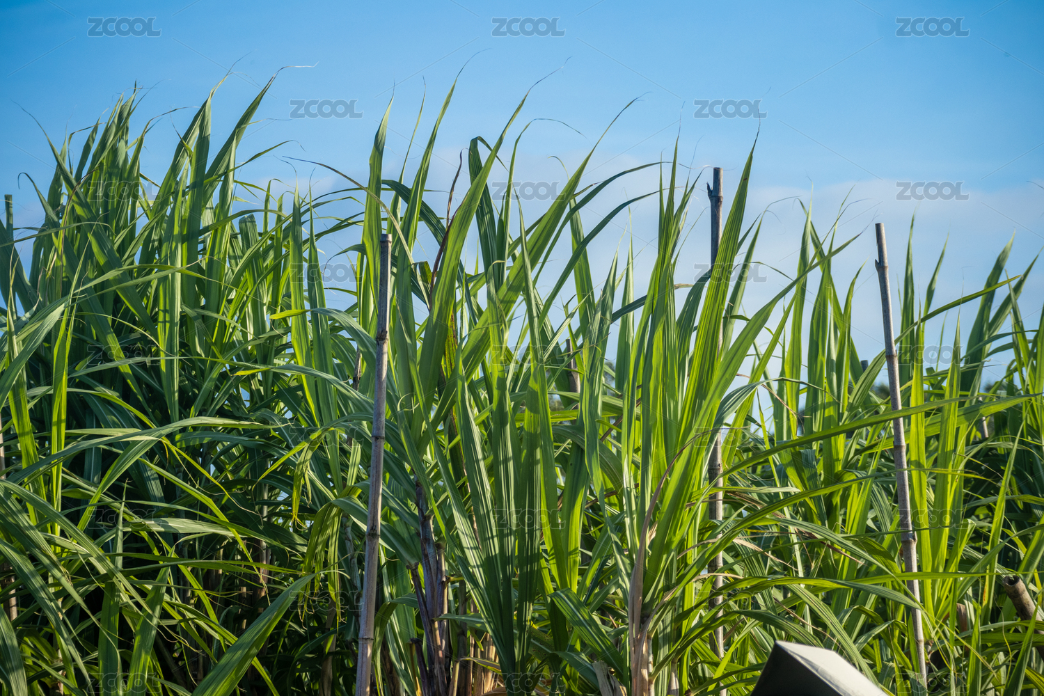 甘蔗,丰收,成熟的,蓝天,田野,绿色,植物,茎秆,叶片,阳光