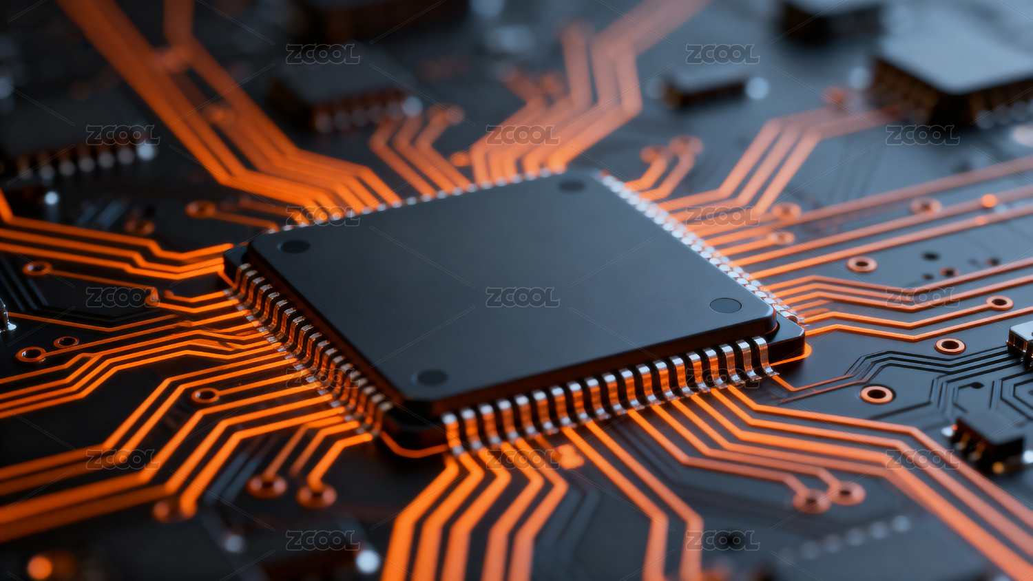 电路,芯片,蓝色,光效,科技,发光,技术,电子,橙色,细节