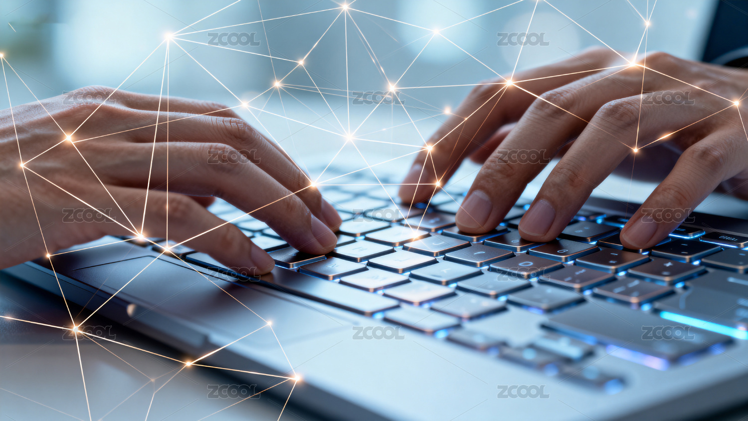 科技感双手打字电脑