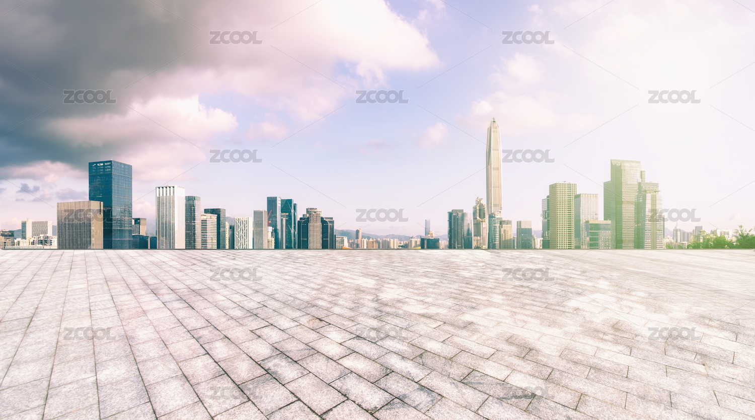 深圳城市天际线和户外没有人的地板