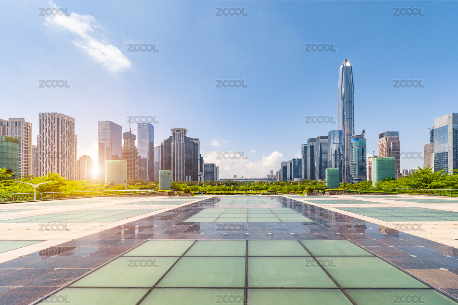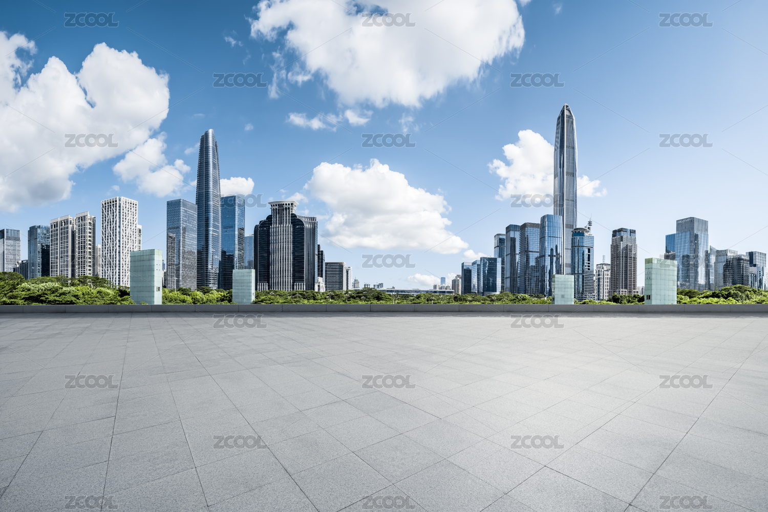 深圳市中心没有人的广场和摩天大楼