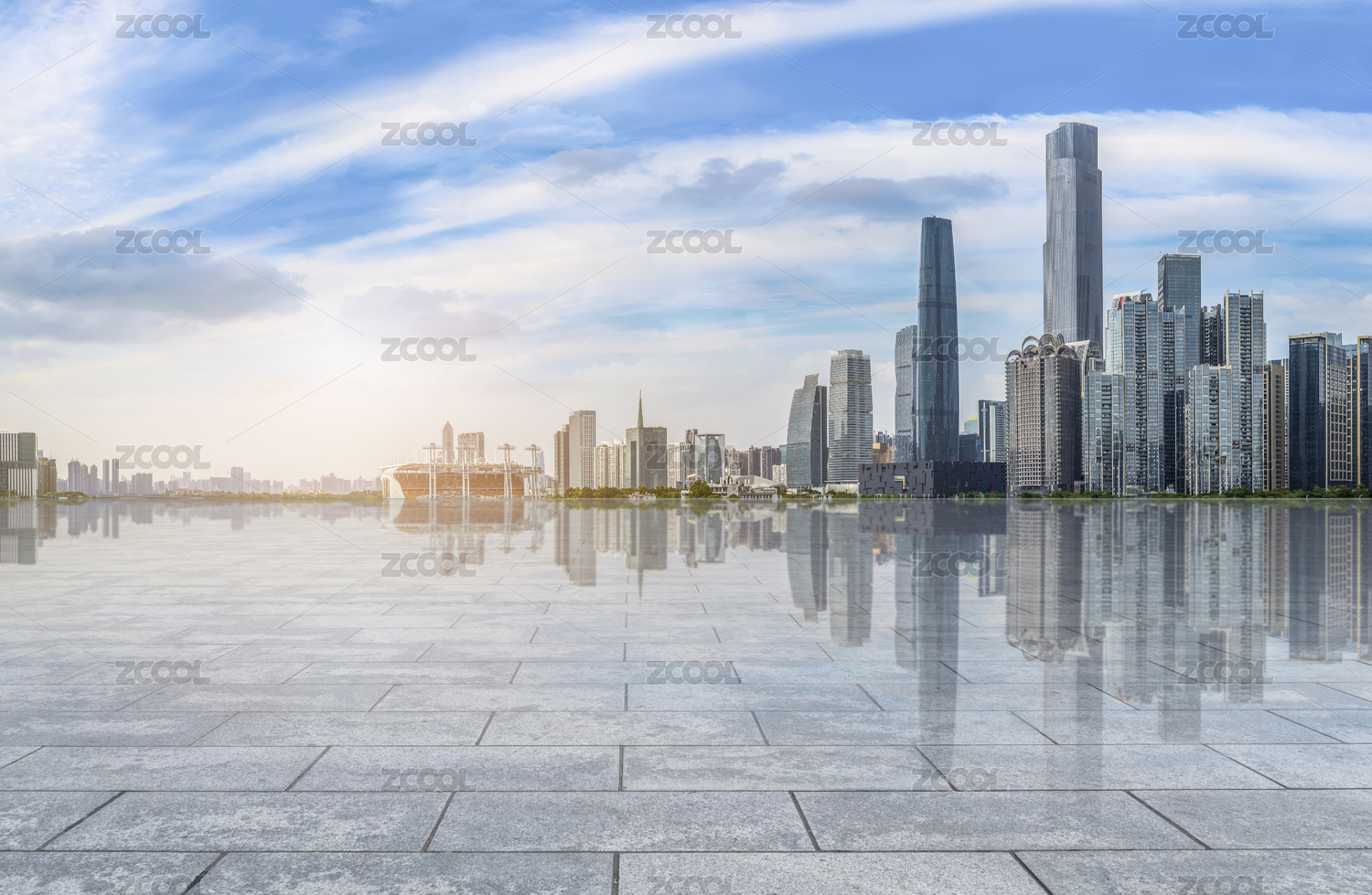 道路地面和广州建筑天际线