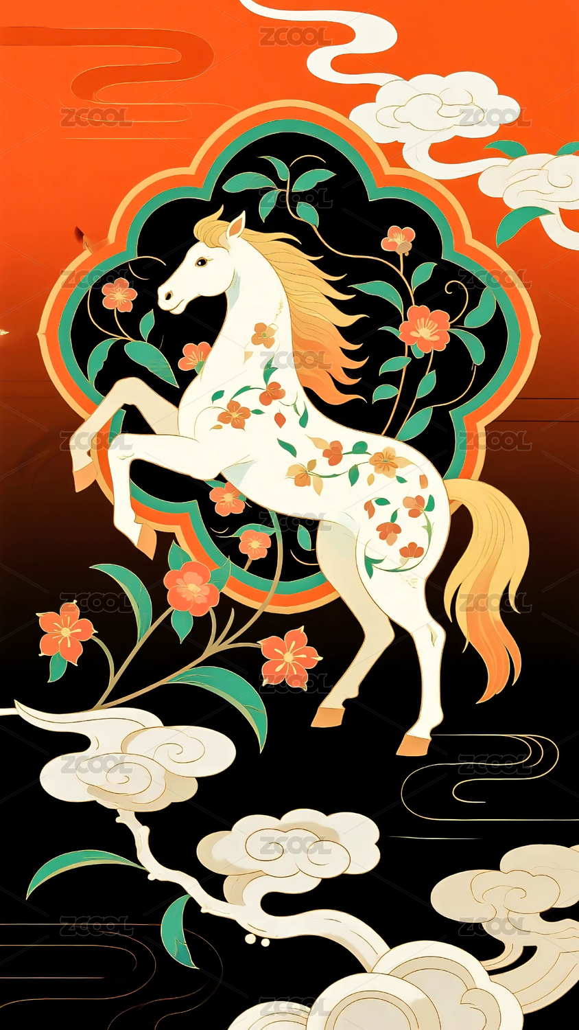 春节,马,生肖,喜庆,红色,背景,中国,传统,文化,福