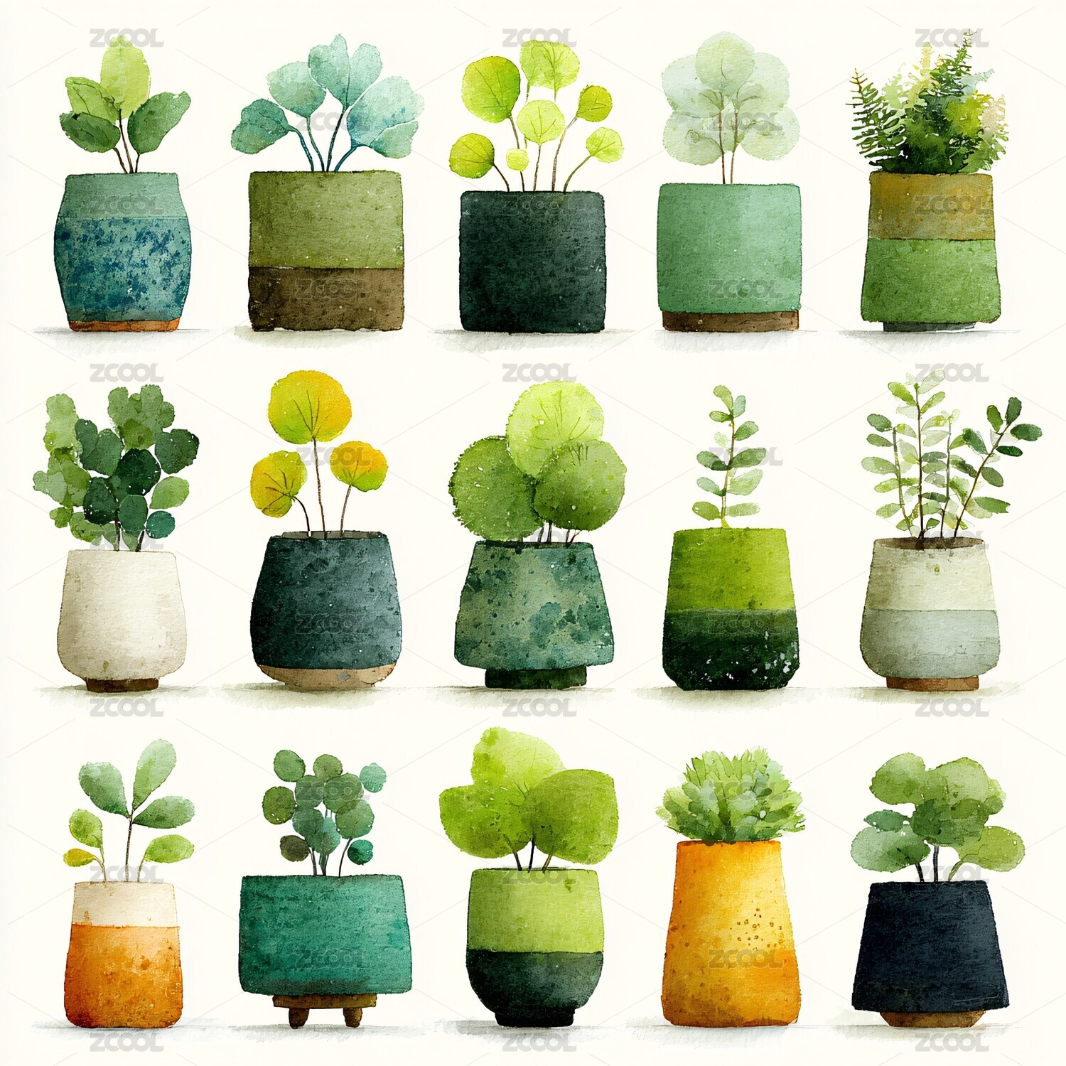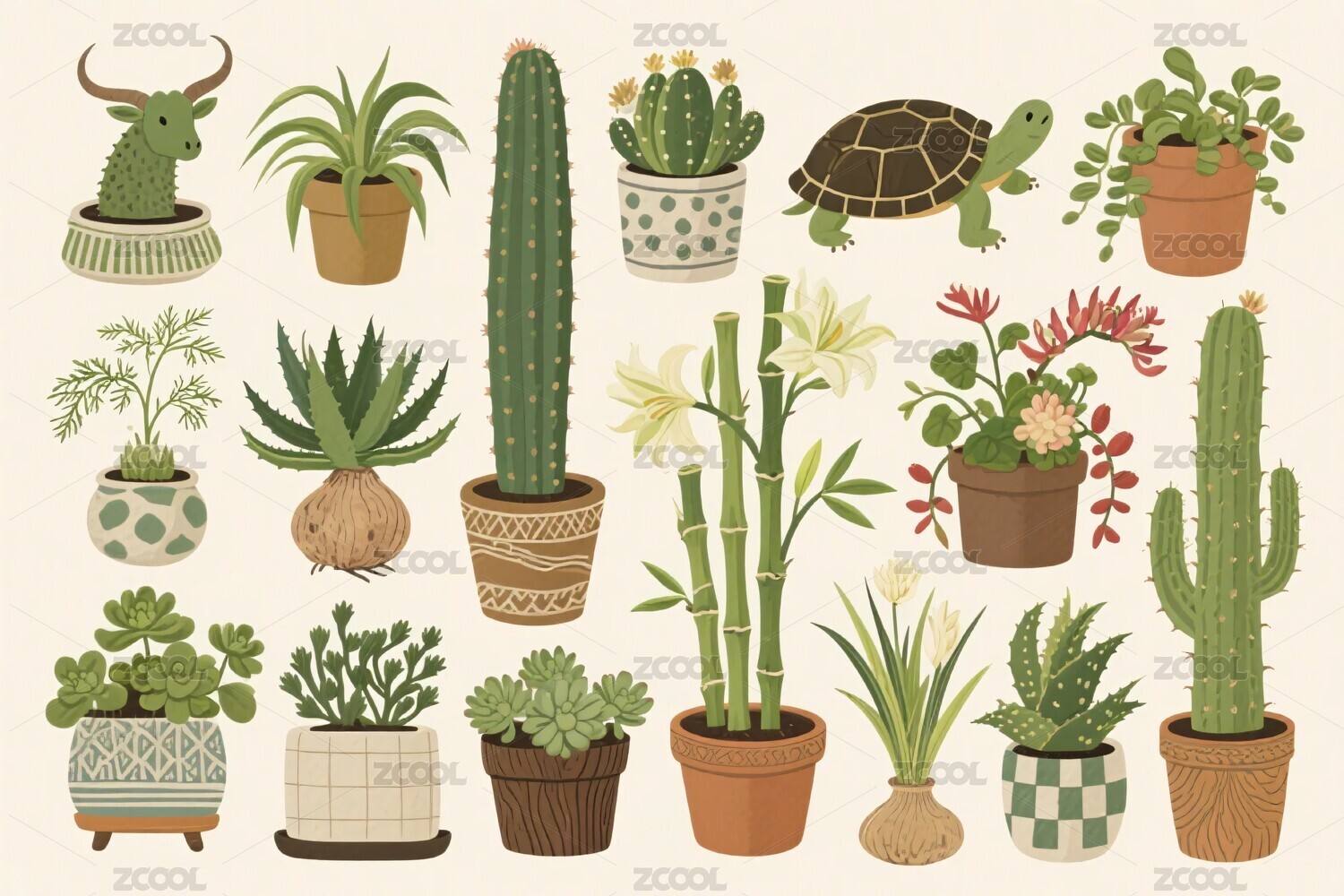 多种盆栽植物插画