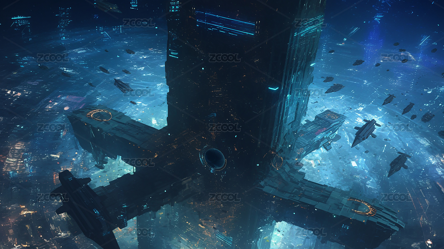 虚拟科幻量子瞬移枢纽抽象背景场景