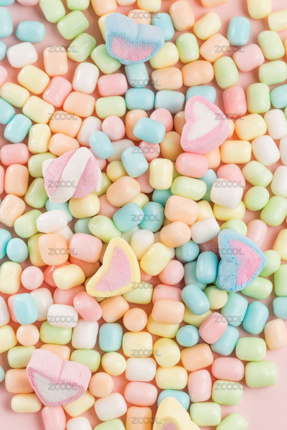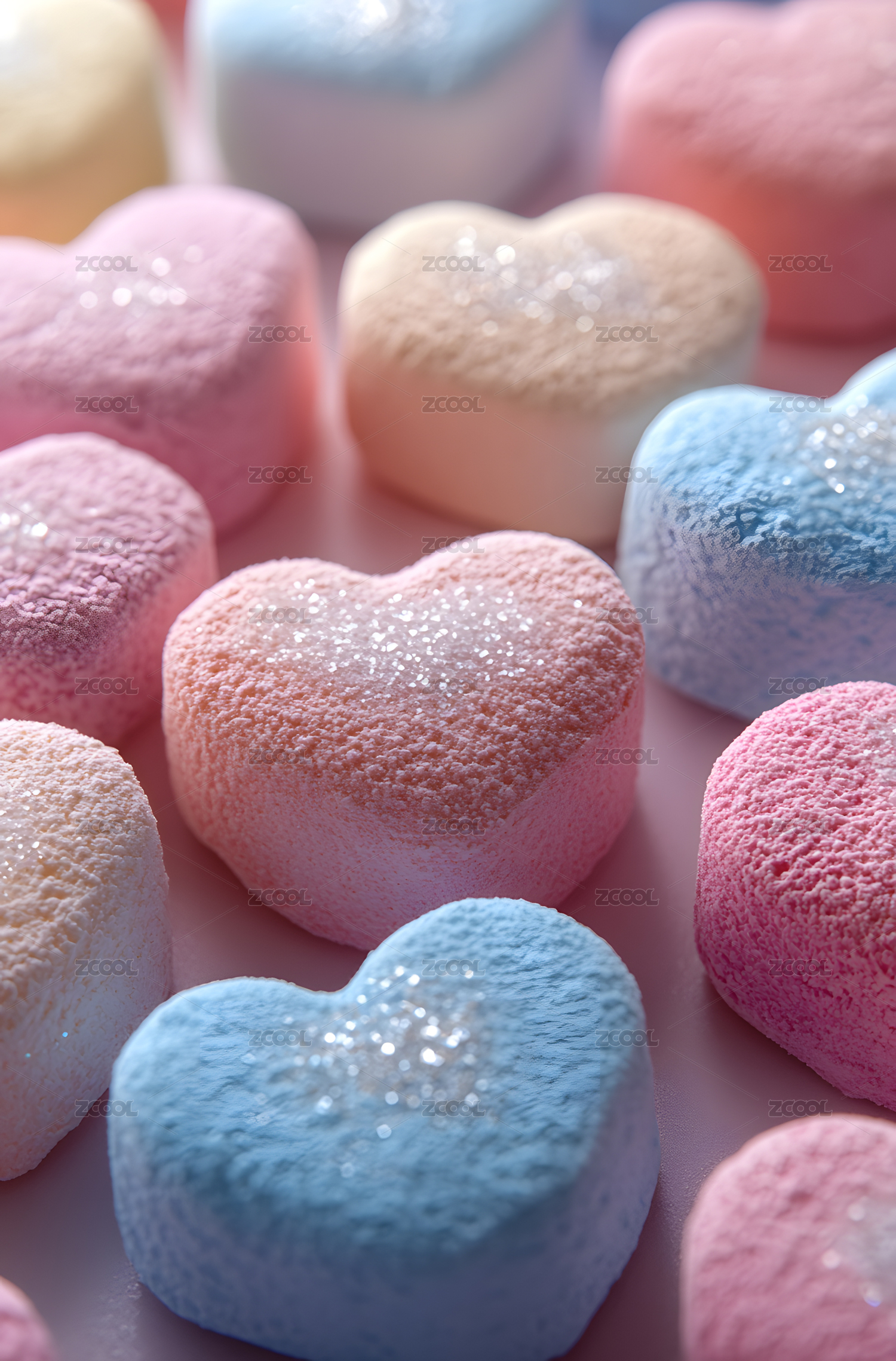 粉色心形糖果散落桌面