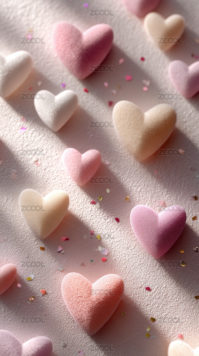 闪耀爱心与散落心形小物