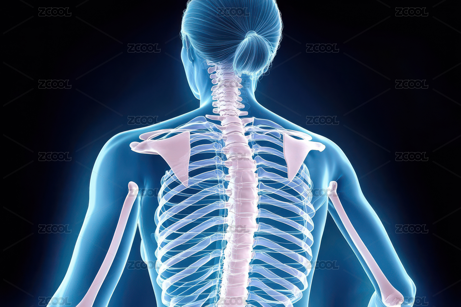 骨骼,脊椎,肋骨,颈椎,肩胛骨,锁骨,骨骼系统,人体解剖,医学影像,X光