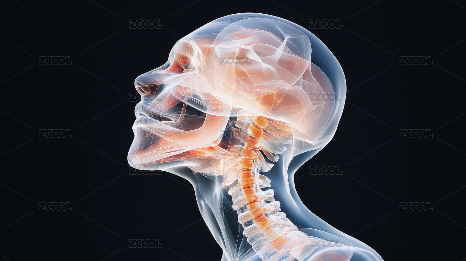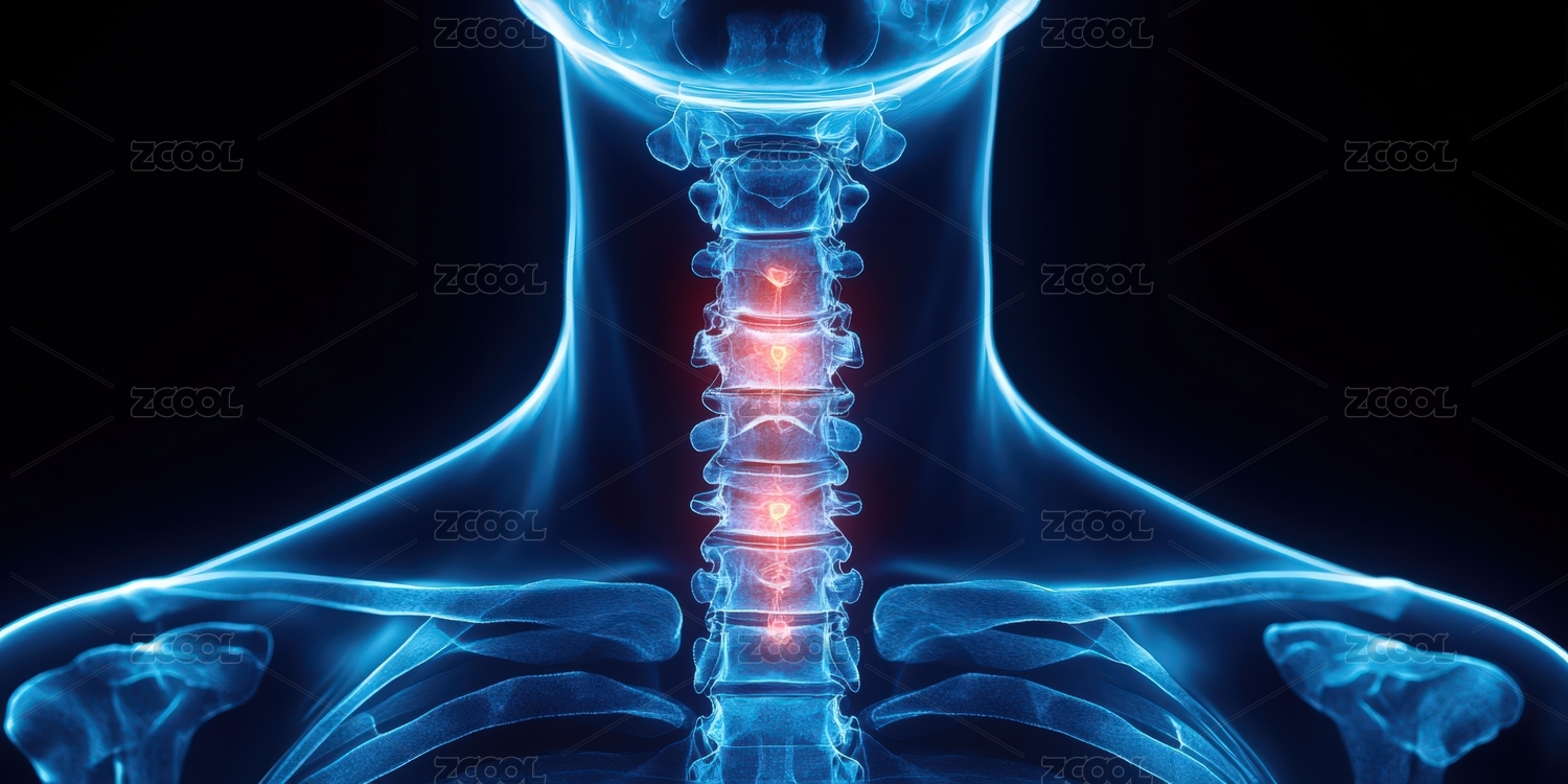 透明颈椎骨骼特写3D渲染医学素材高清图