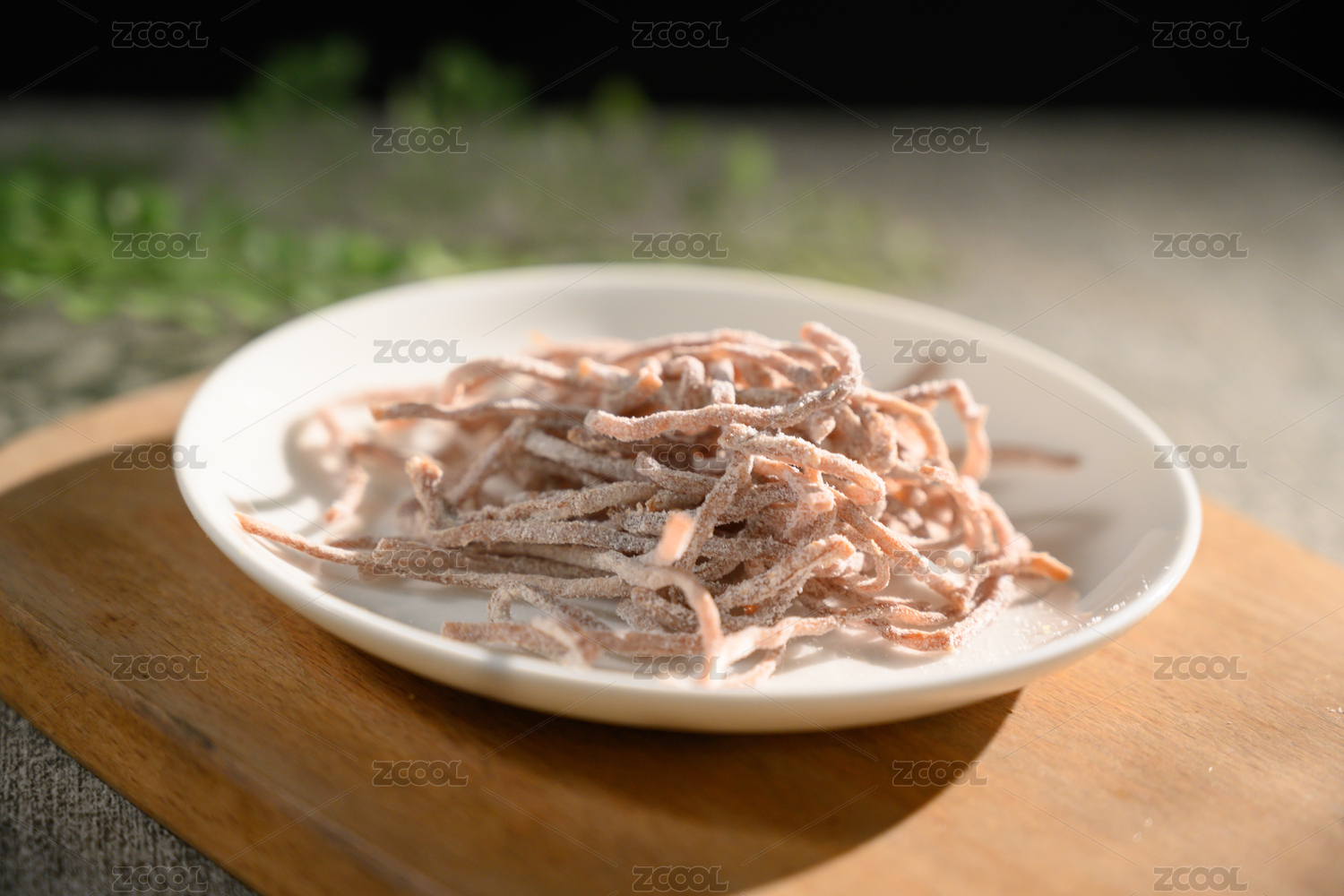 桌面上的盘子里的美味可口的青梅丝