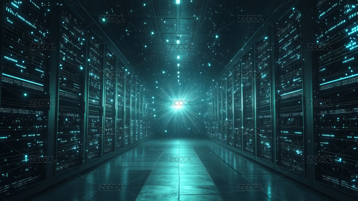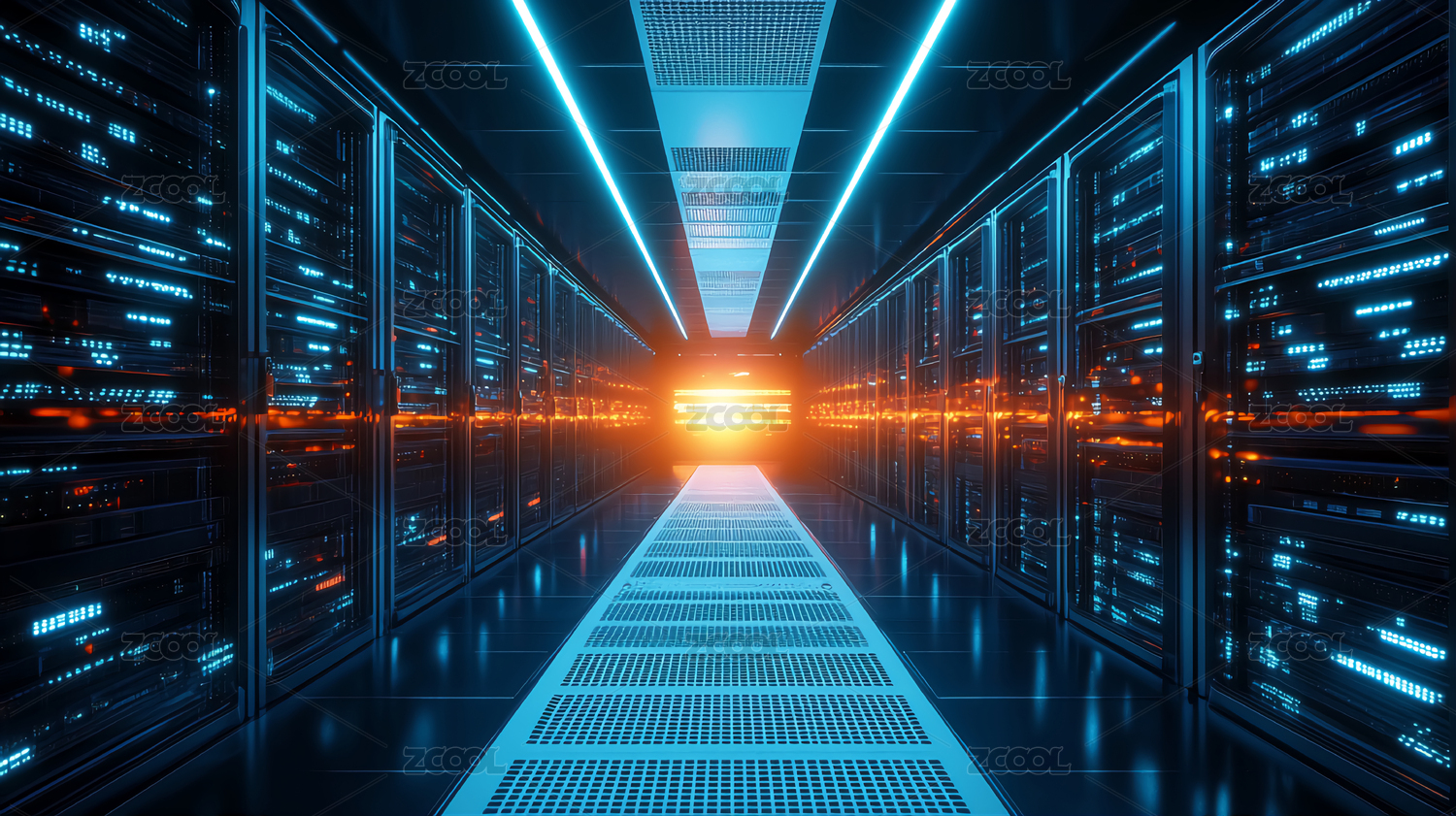 数据中心,服务器,机房,科技,未来,网络,走廊,蓝色,发光,信息