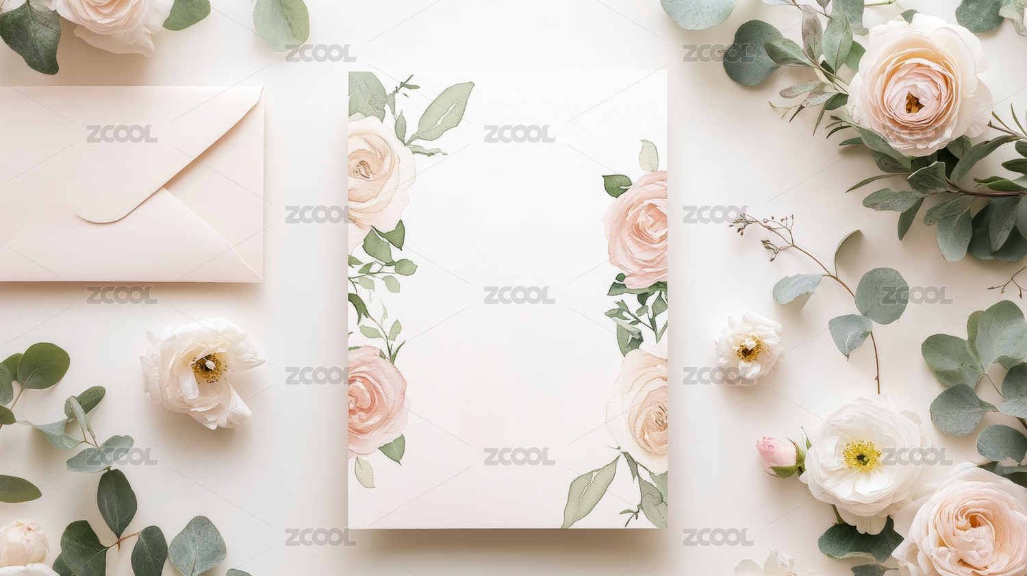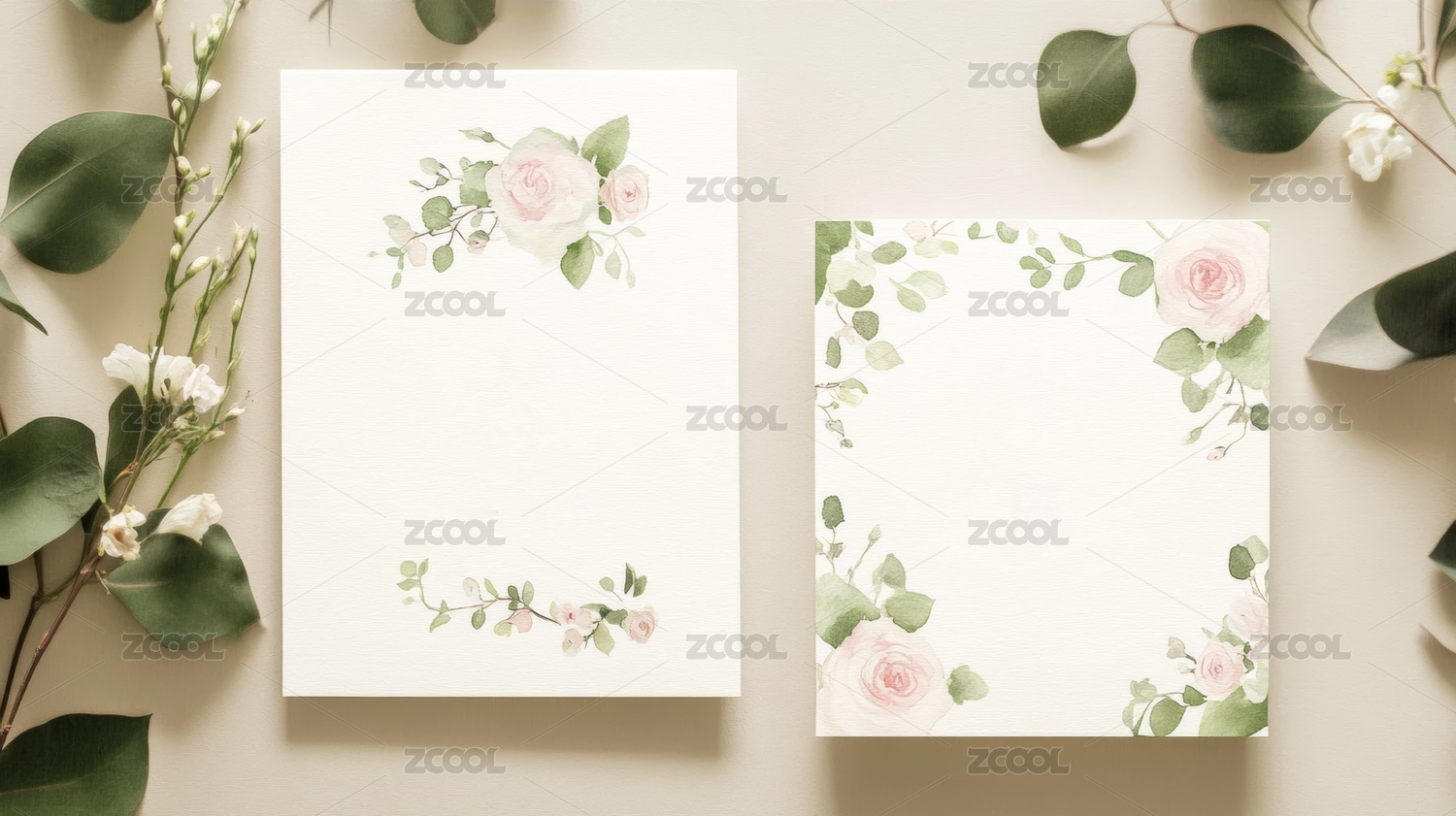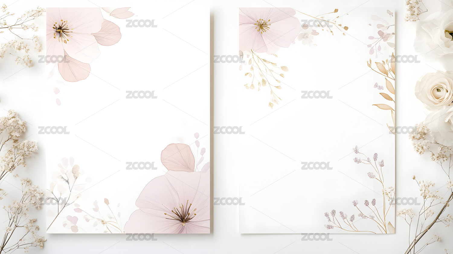 卡片,样机,空白,邀请函,婚礼,花卉,水彩,粉色,浪漫,唯美