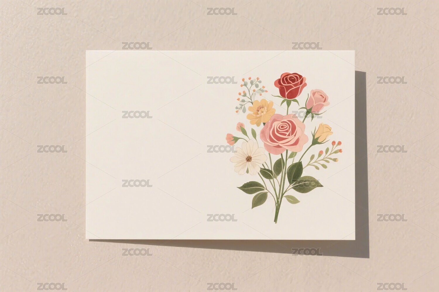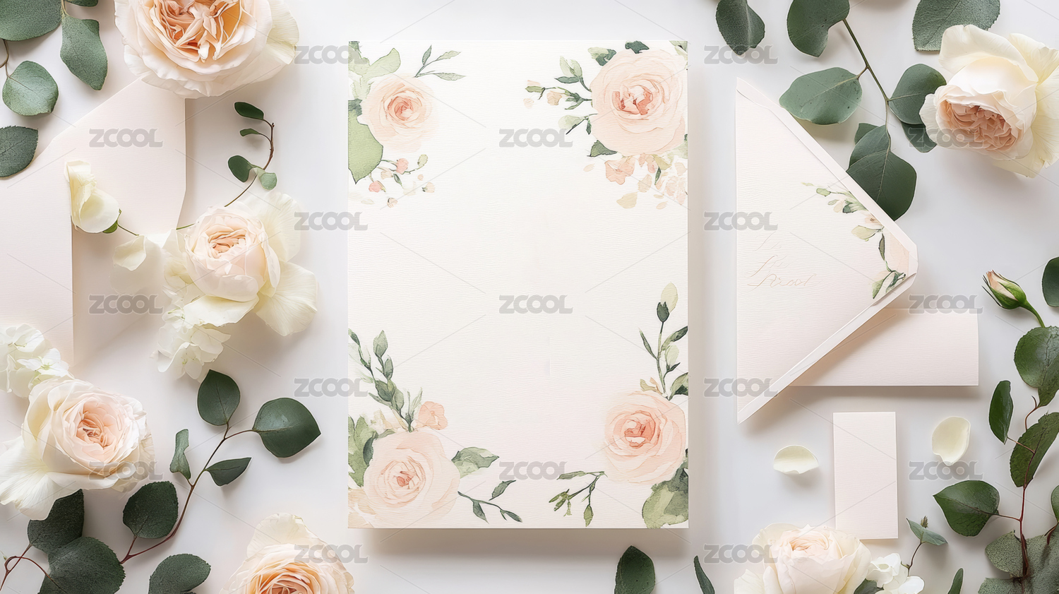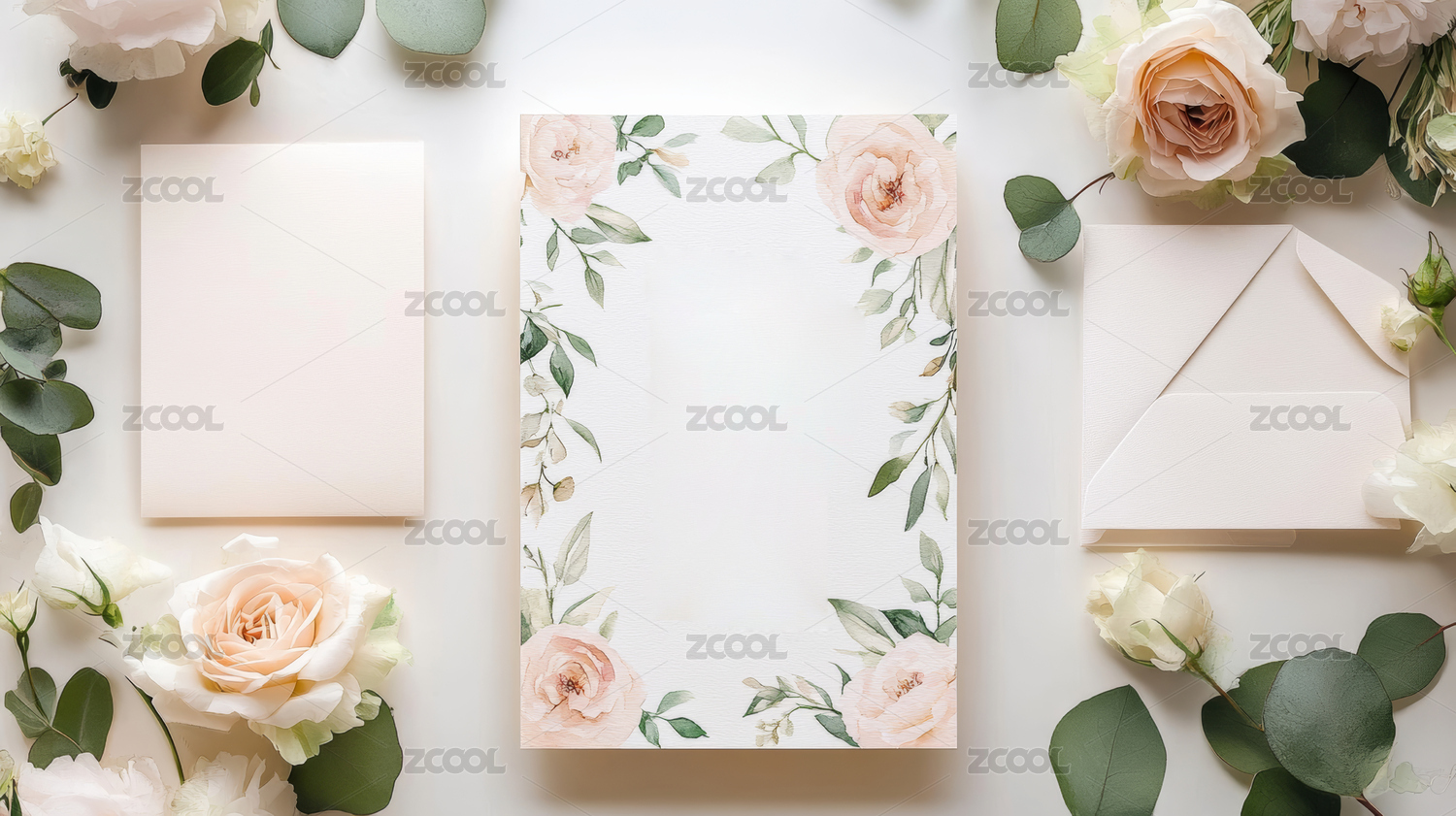 卡片,样机,空白,邀请函,婚礼,花卉,水彩,粉色,浪漫,唯美