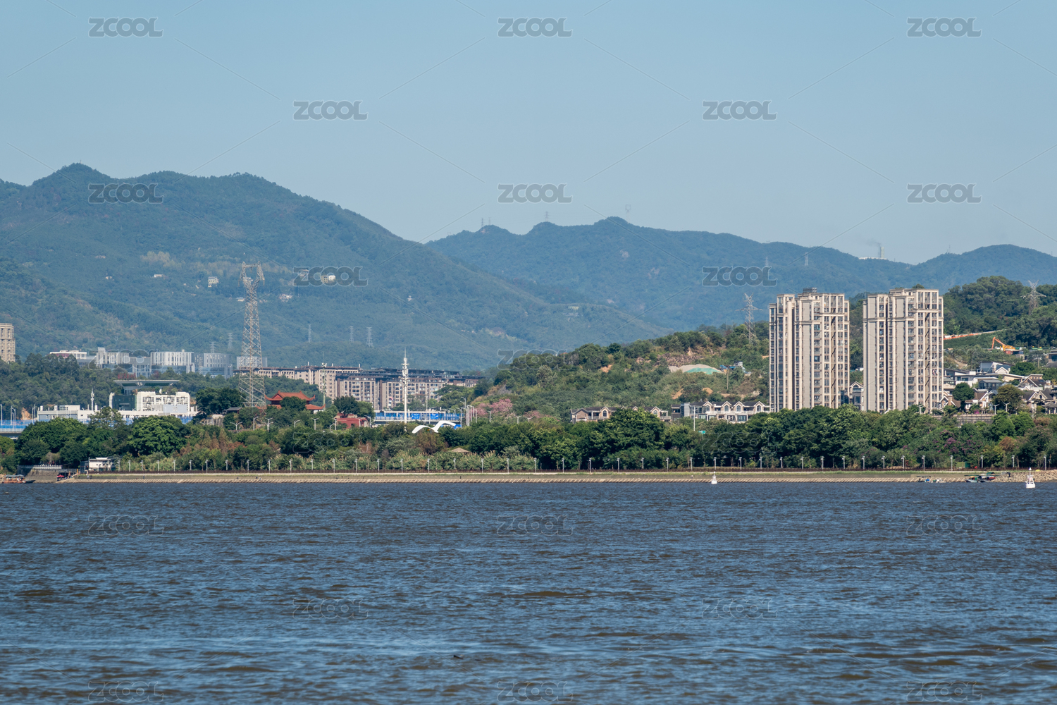 河南省宜阳县洛河两岸城市楼房居住环境天际