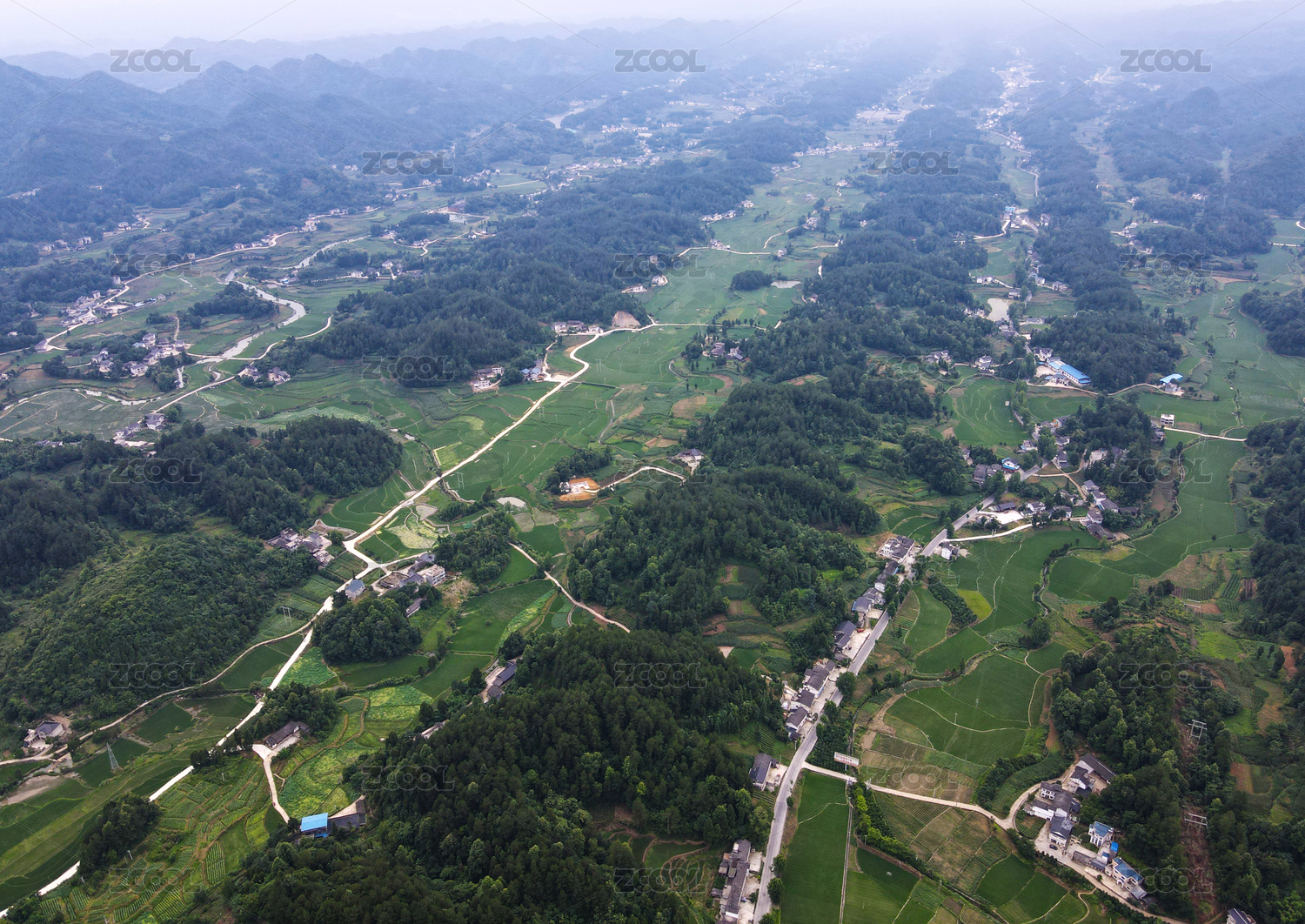 中国湖南溆浦新农村田园风光航拍图