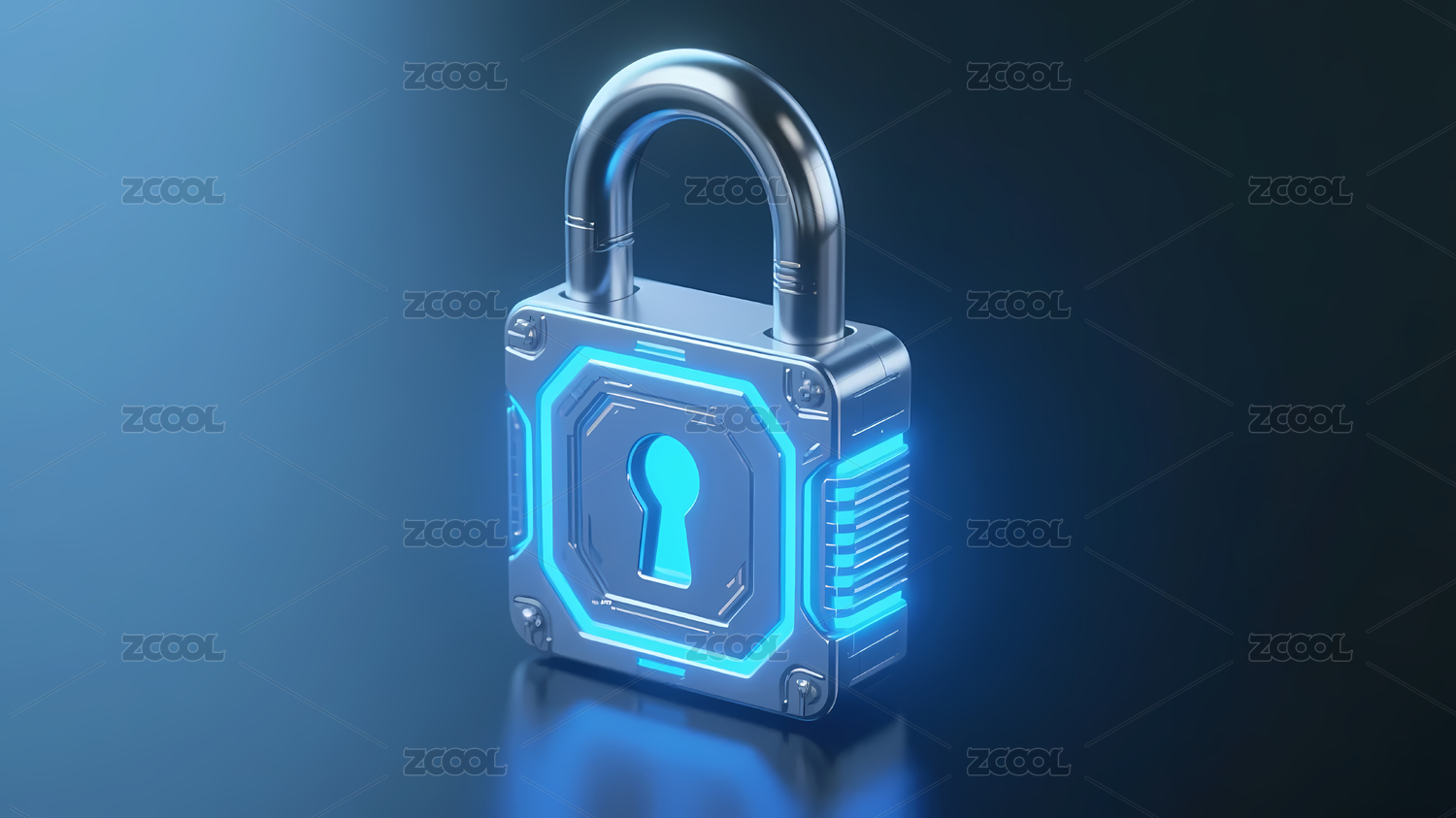 科技蓝色3D毛玻璃加密锁图标