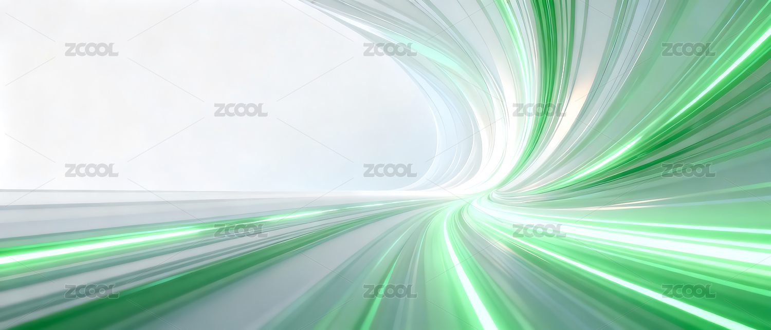 白绿色光速线隧道数据流场景