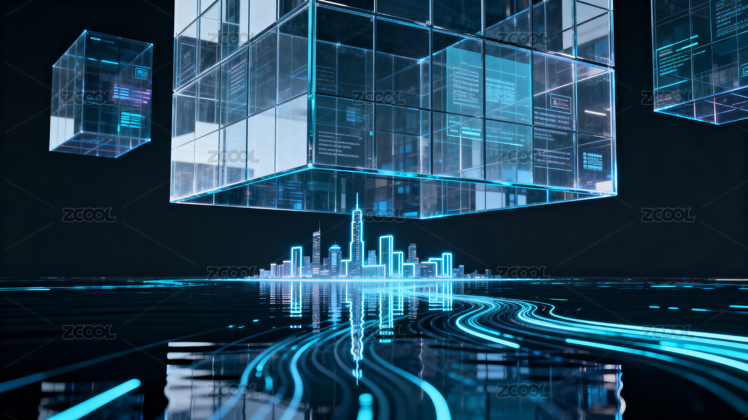 未来城市与科技立方体