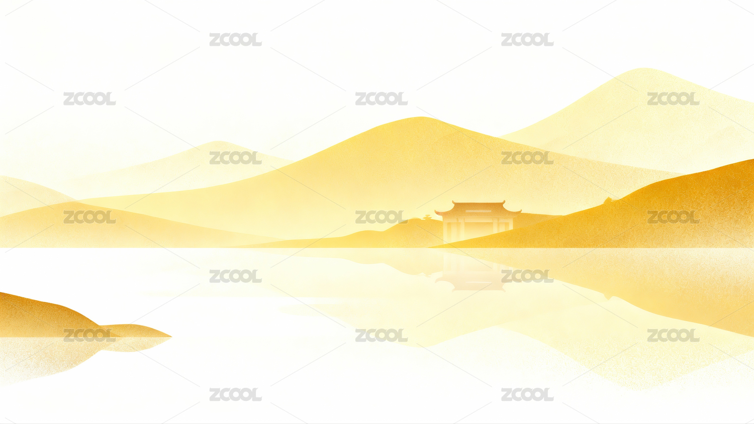 宫殿,金色,古风,建筑,中国风,水墨,祥云,流水,意境,传统