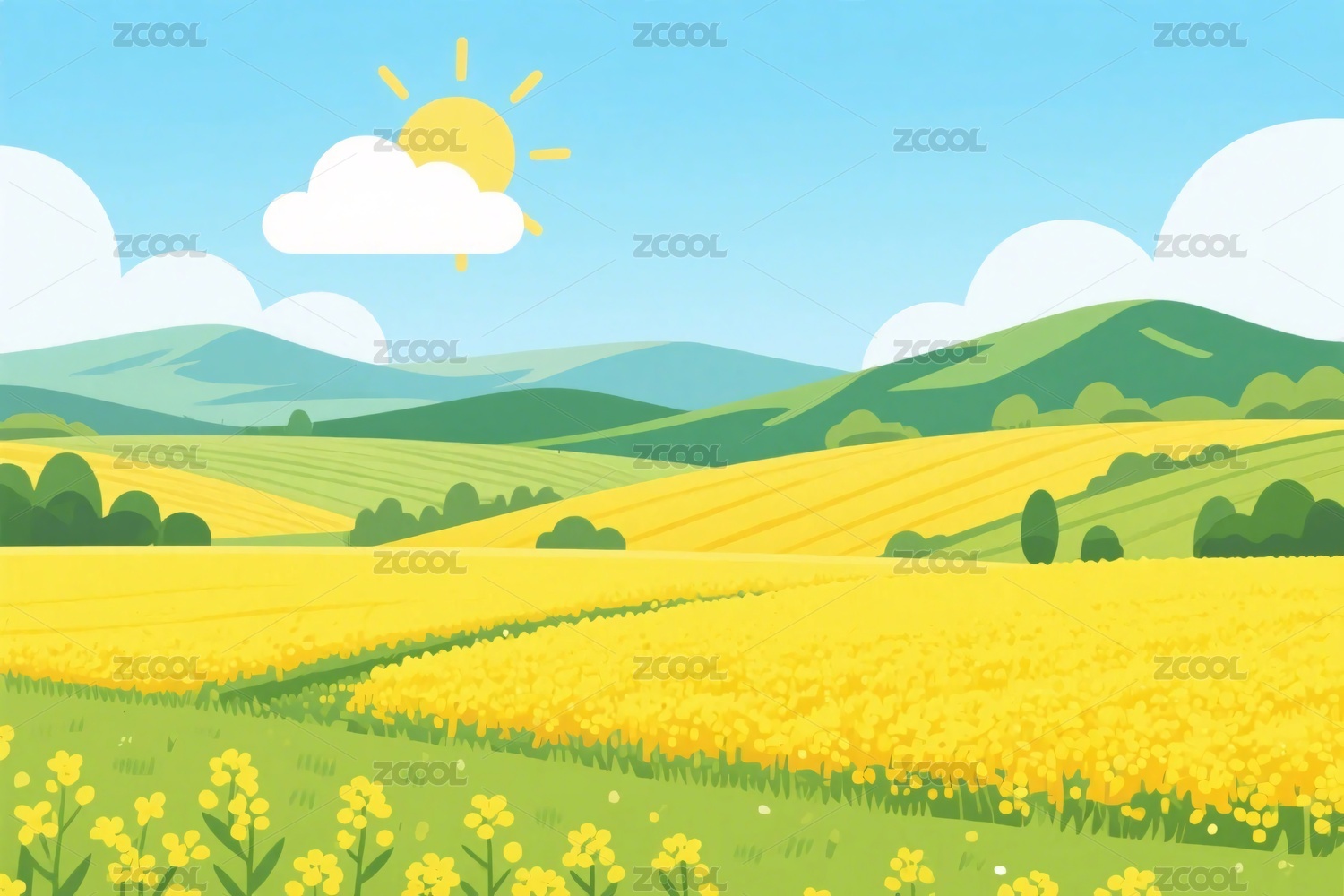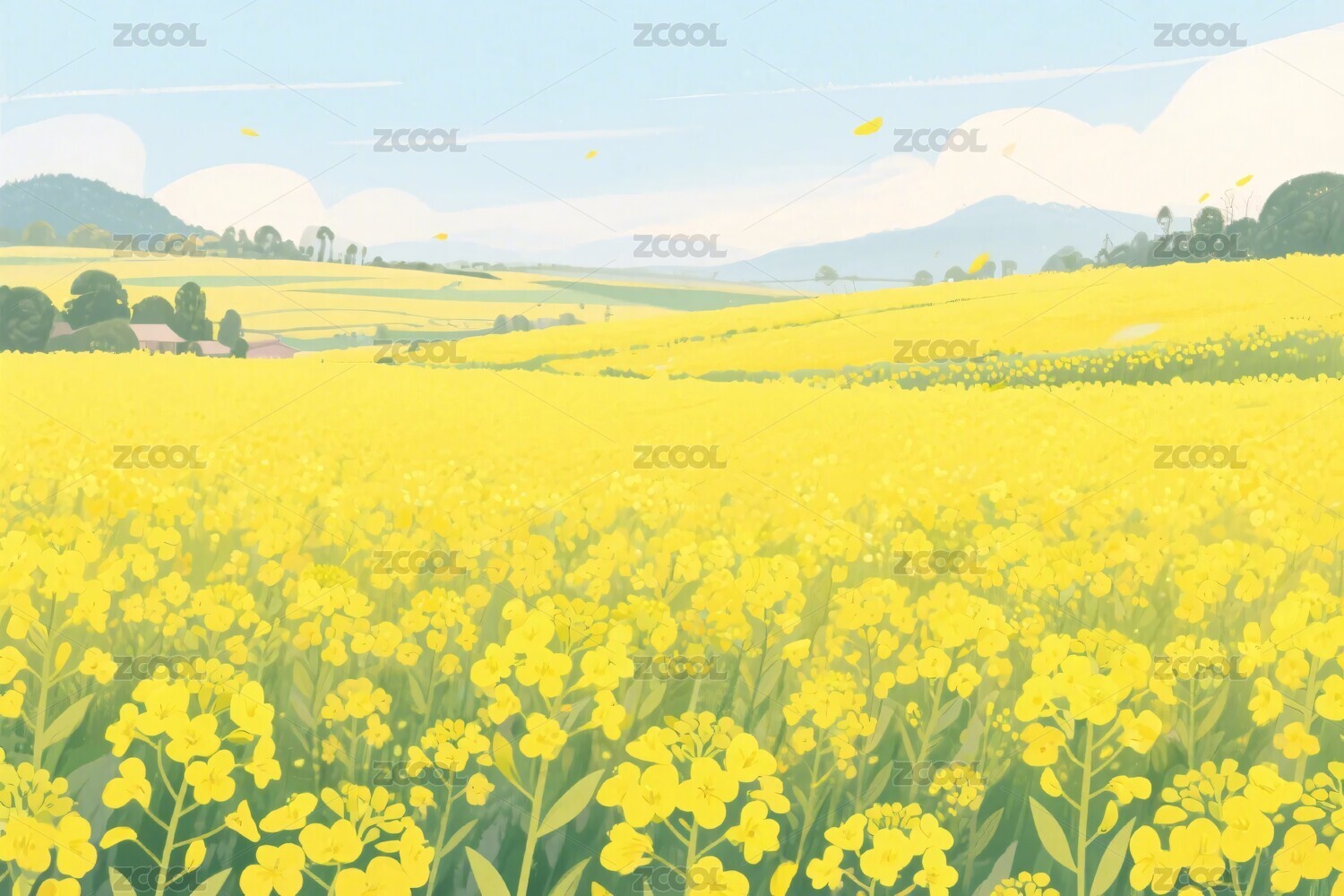 油菜花田风景插画