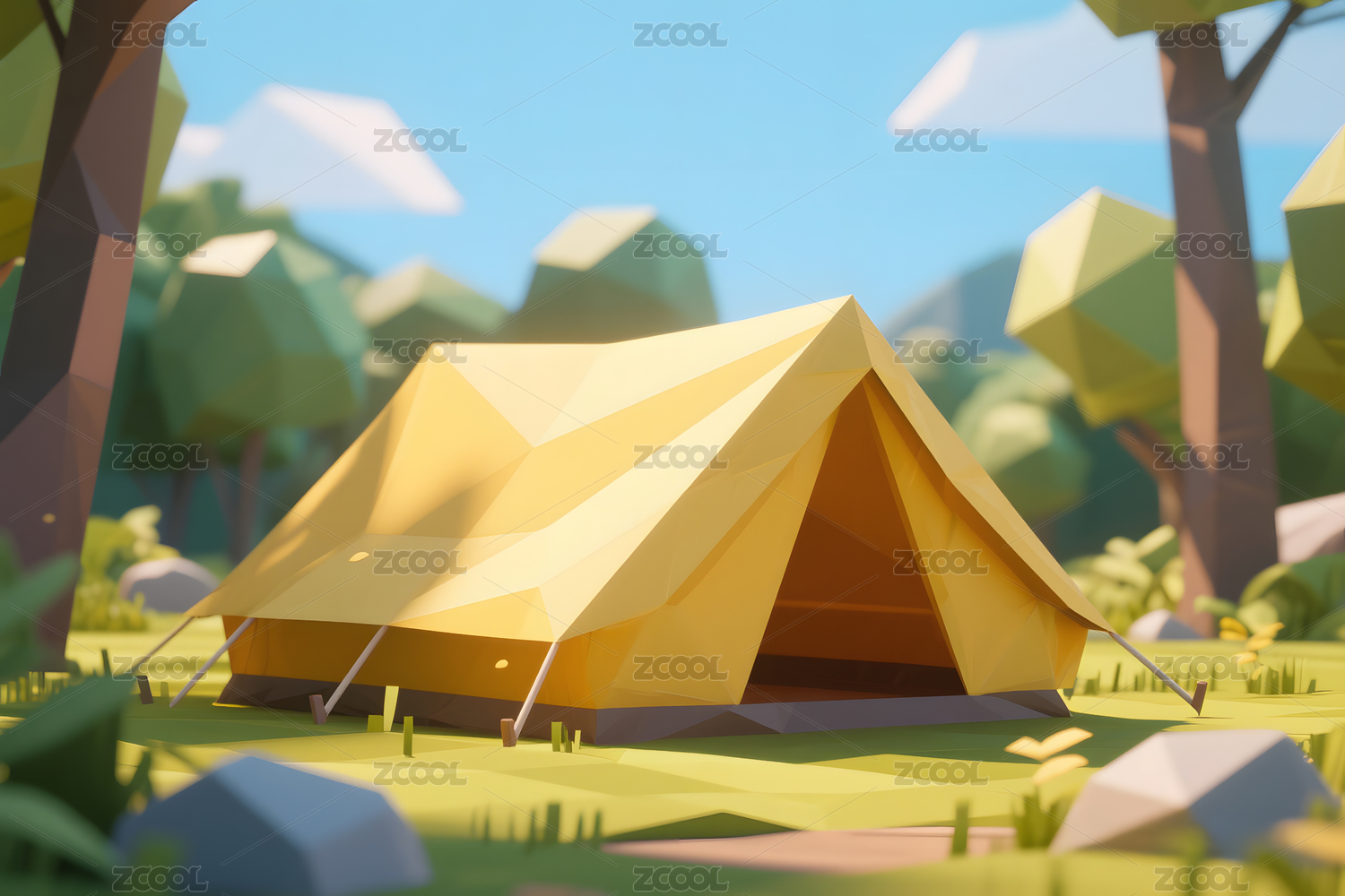 3D户外森林露营帐篷插画模型