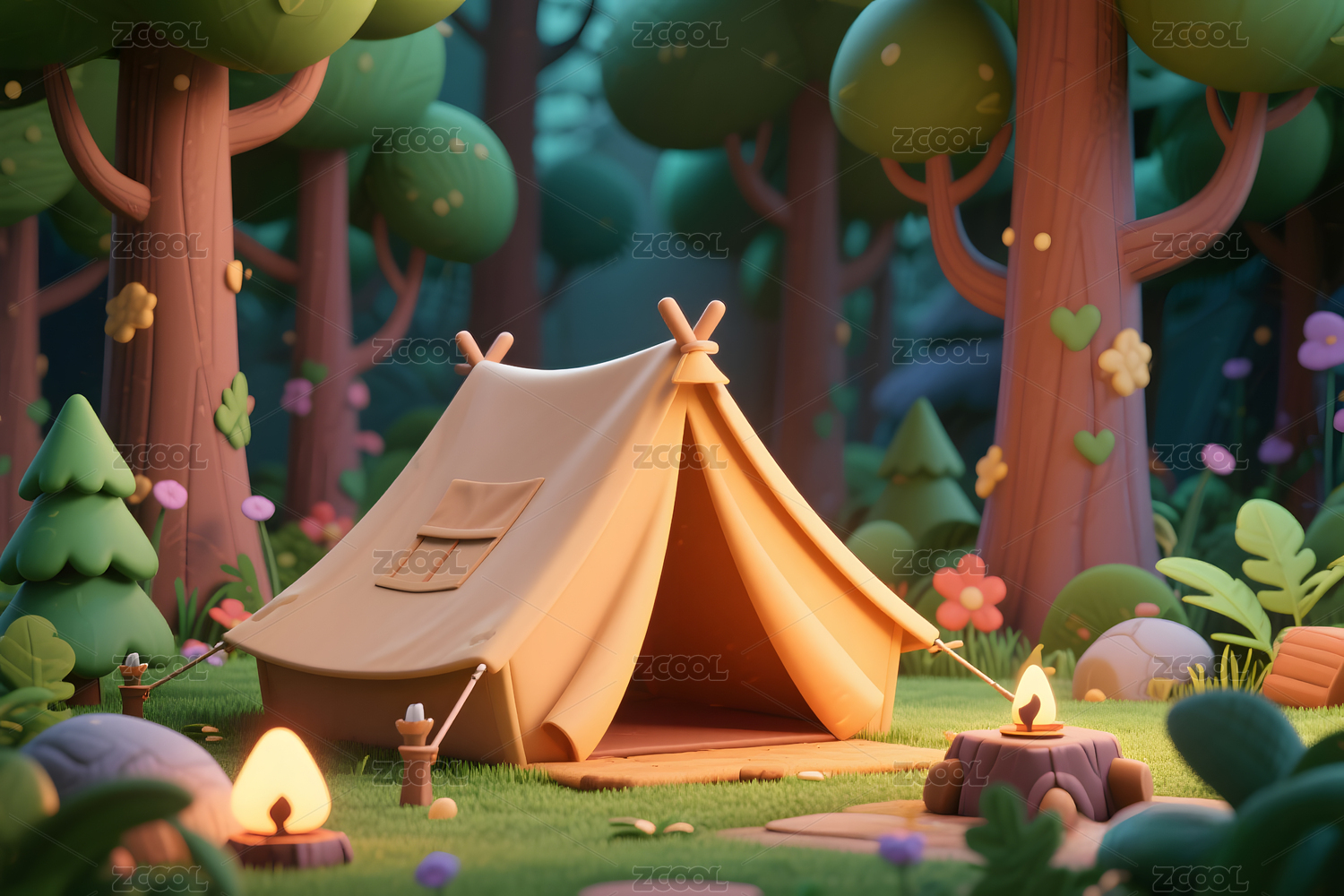 3D卡通露营帐篷唯美风景