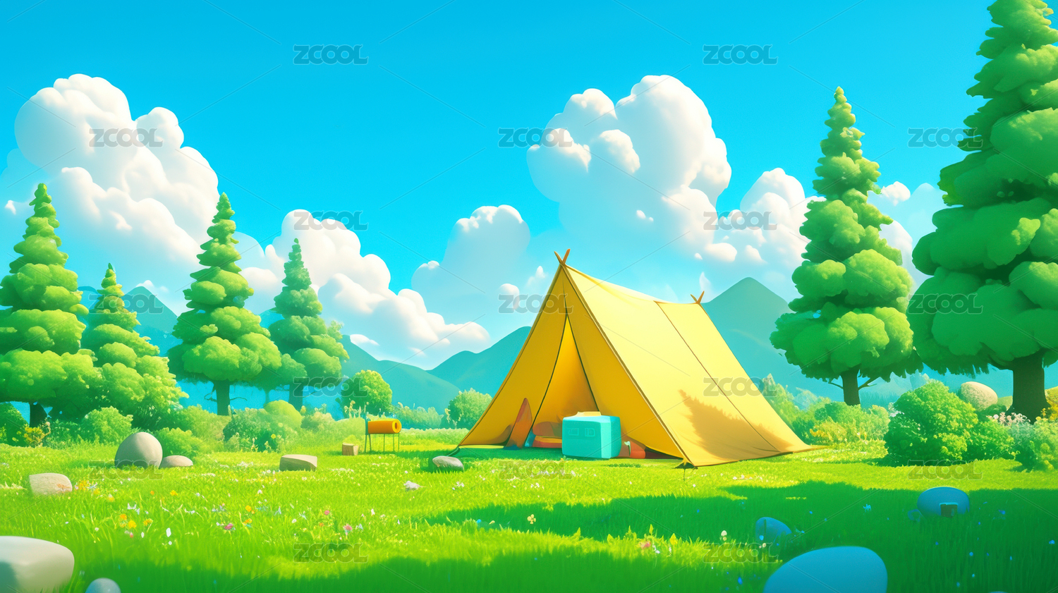 卡通风格野外露营场景