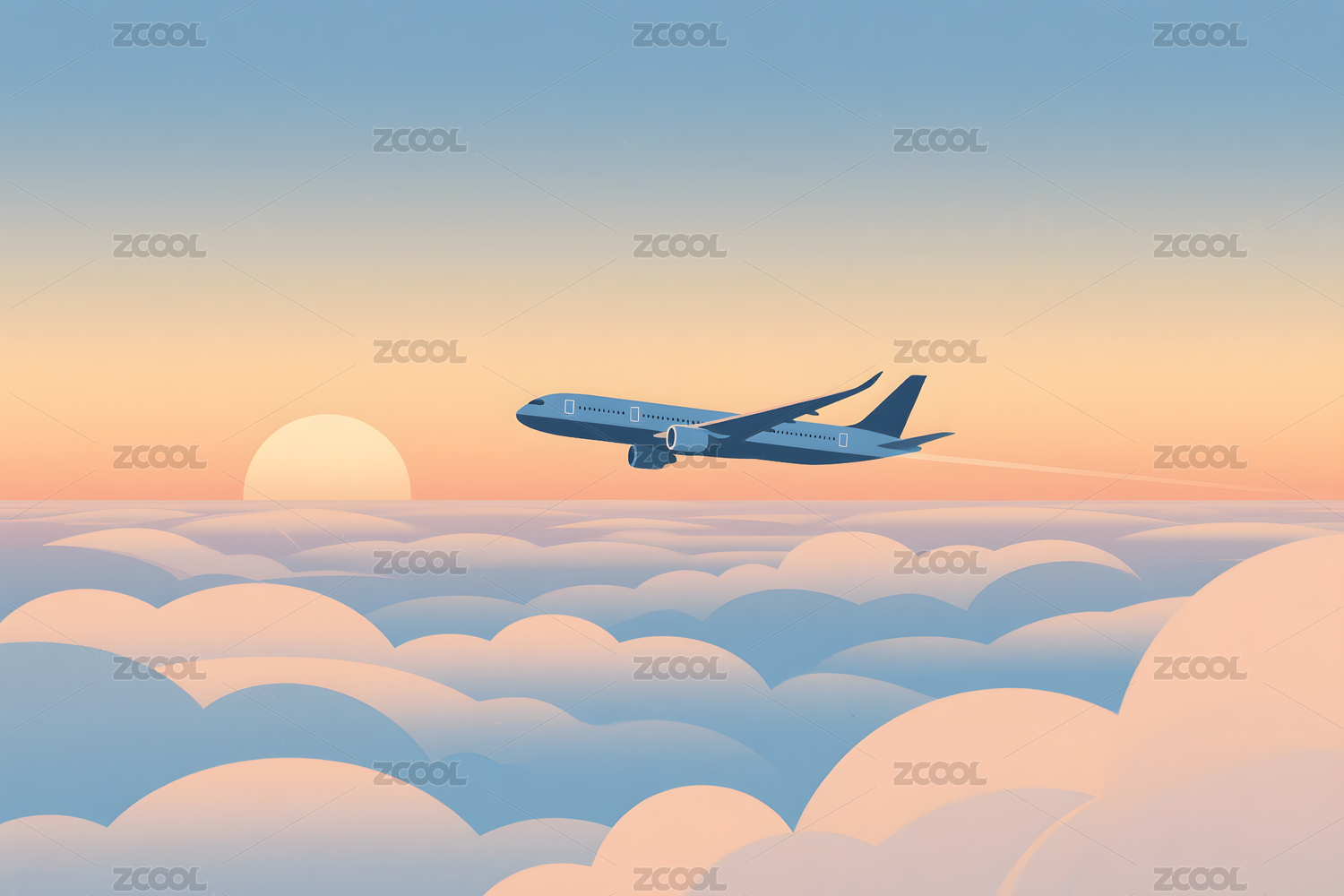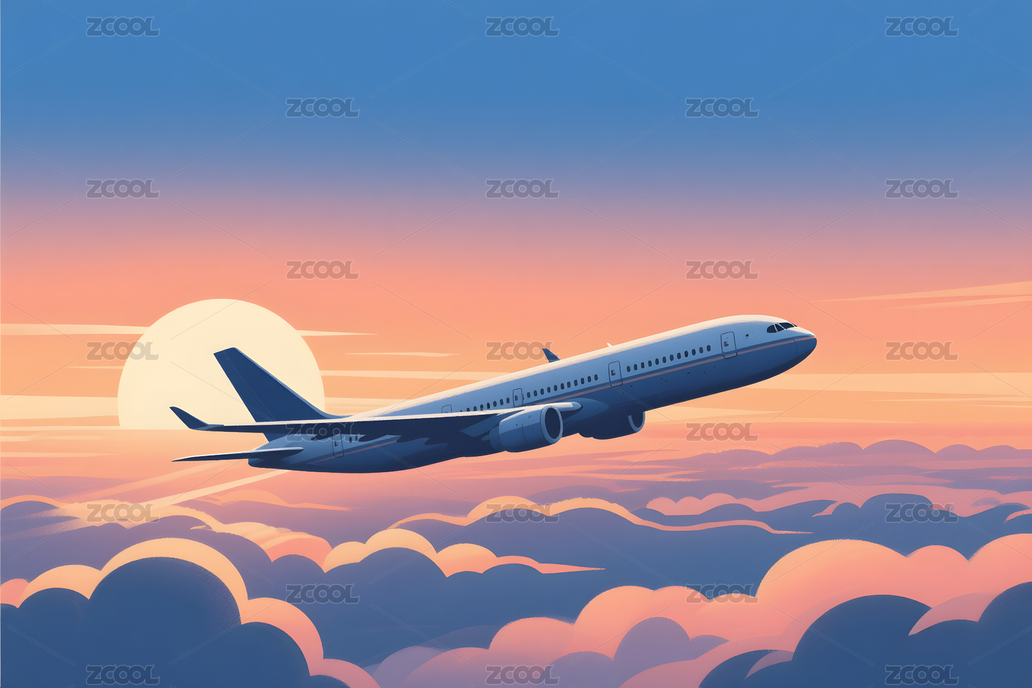 飞机,夕阳,云海,飞行,天空,晚霞,客机,航空,云端,日落