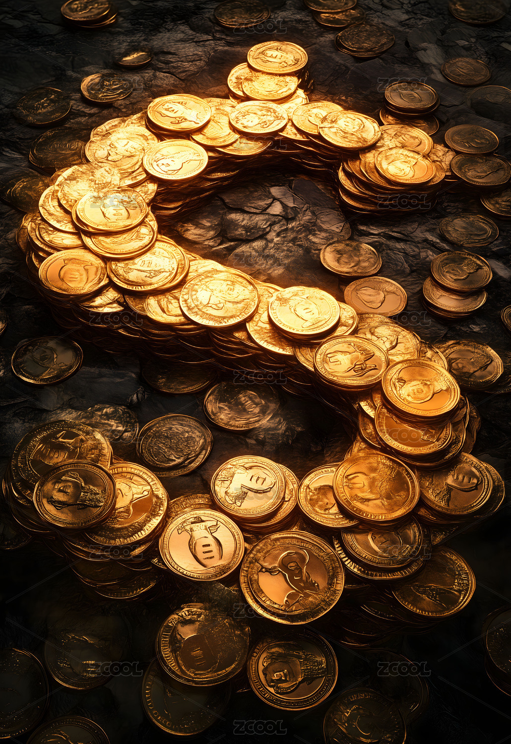 金币摆出一个字母S壁纸背景