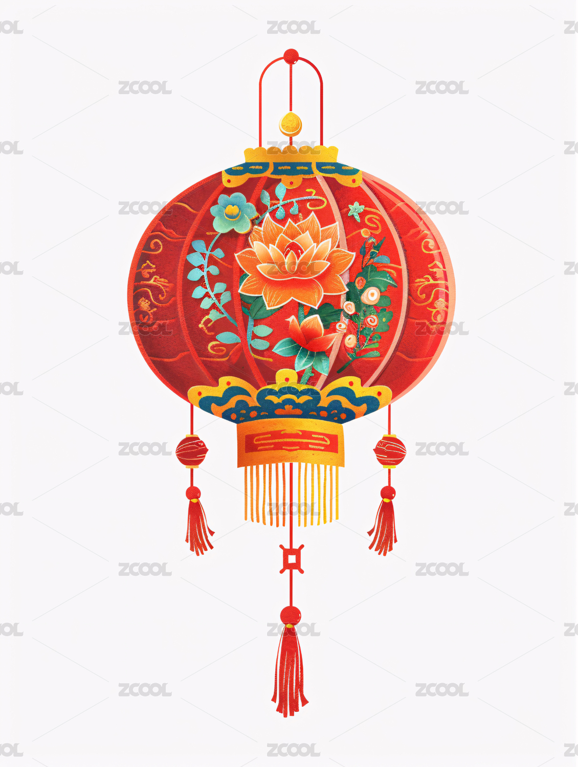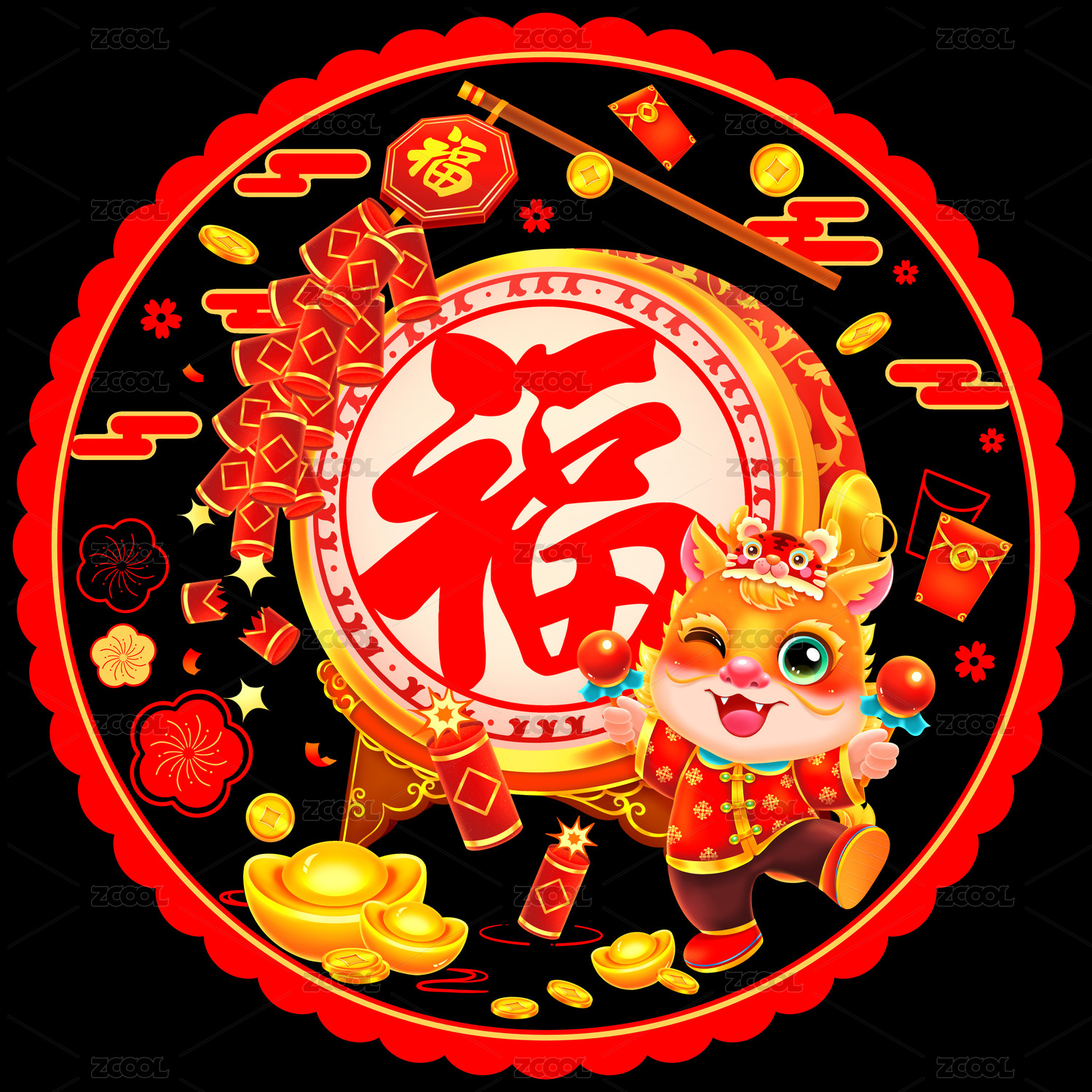 国潮春节新年蛇年生肖灯笼蛇拜年窗花