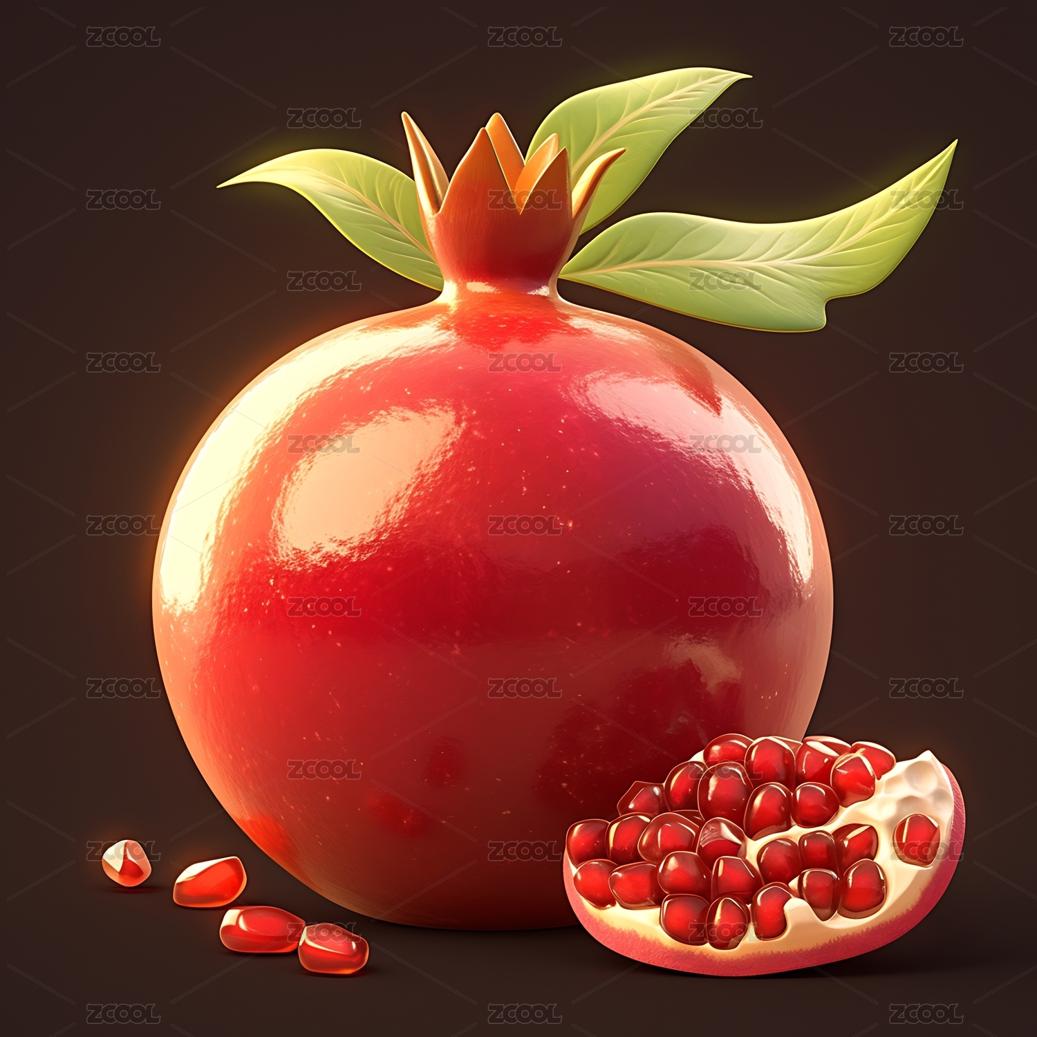 3D石榴水果插图