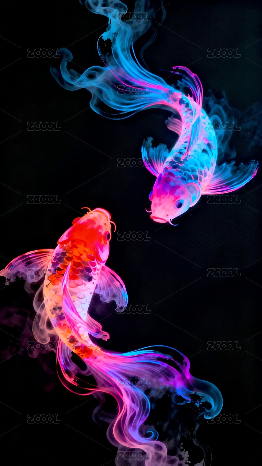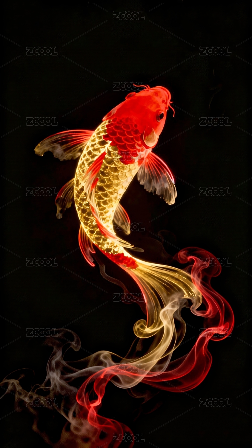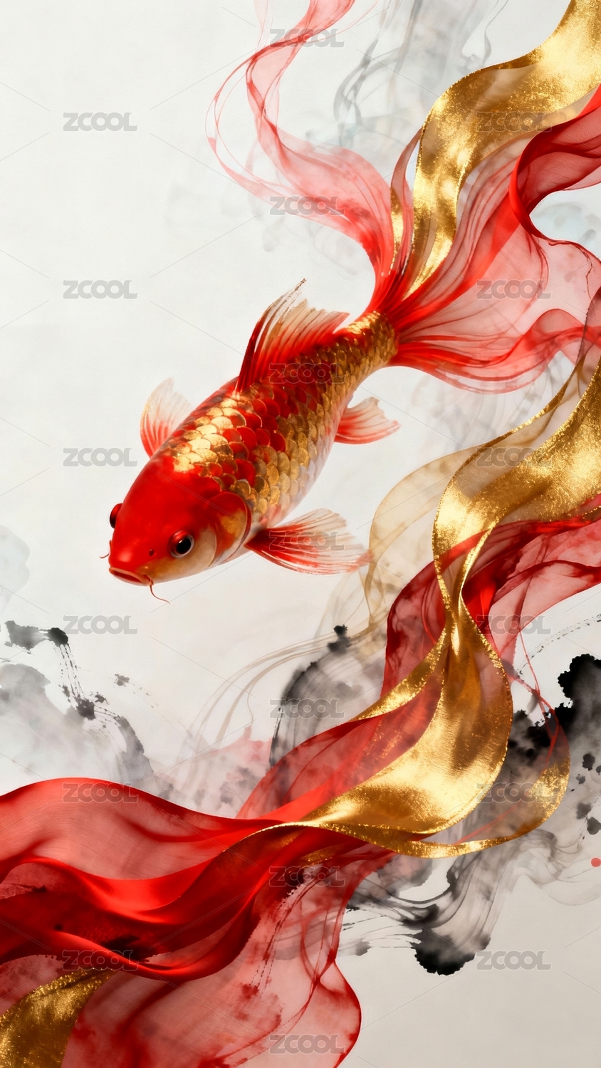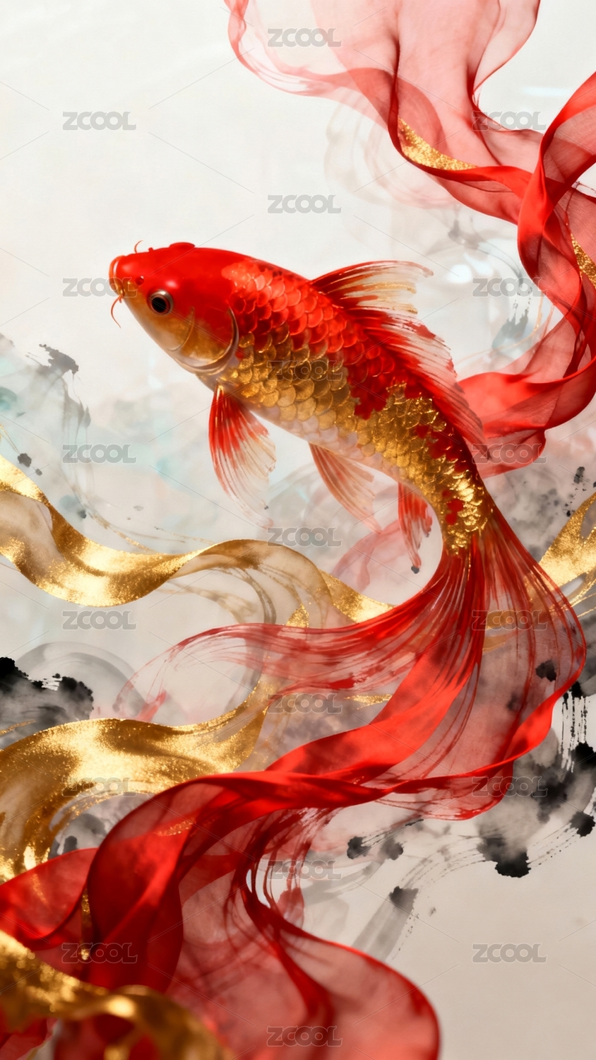 主视觉,商业,壁纸,艺术,插画,装饰,锦鲤,吉祥,寓意,水墨