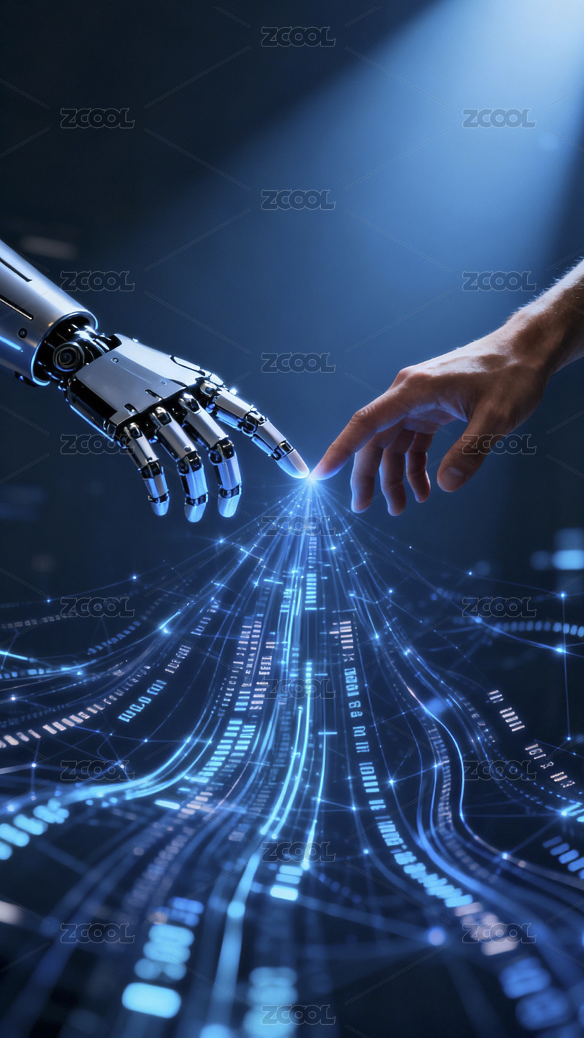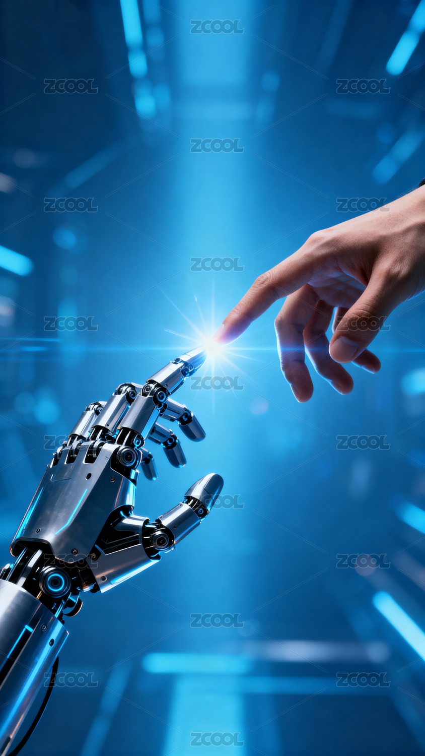 主视觉,商业,壁纸,机械,手指,蓝光,科技,未来,人工智能,机器人