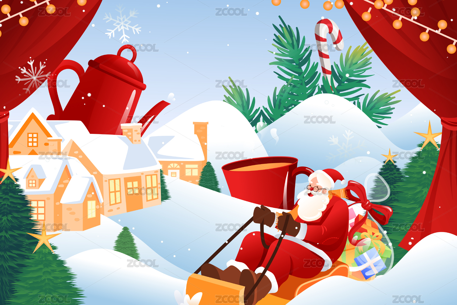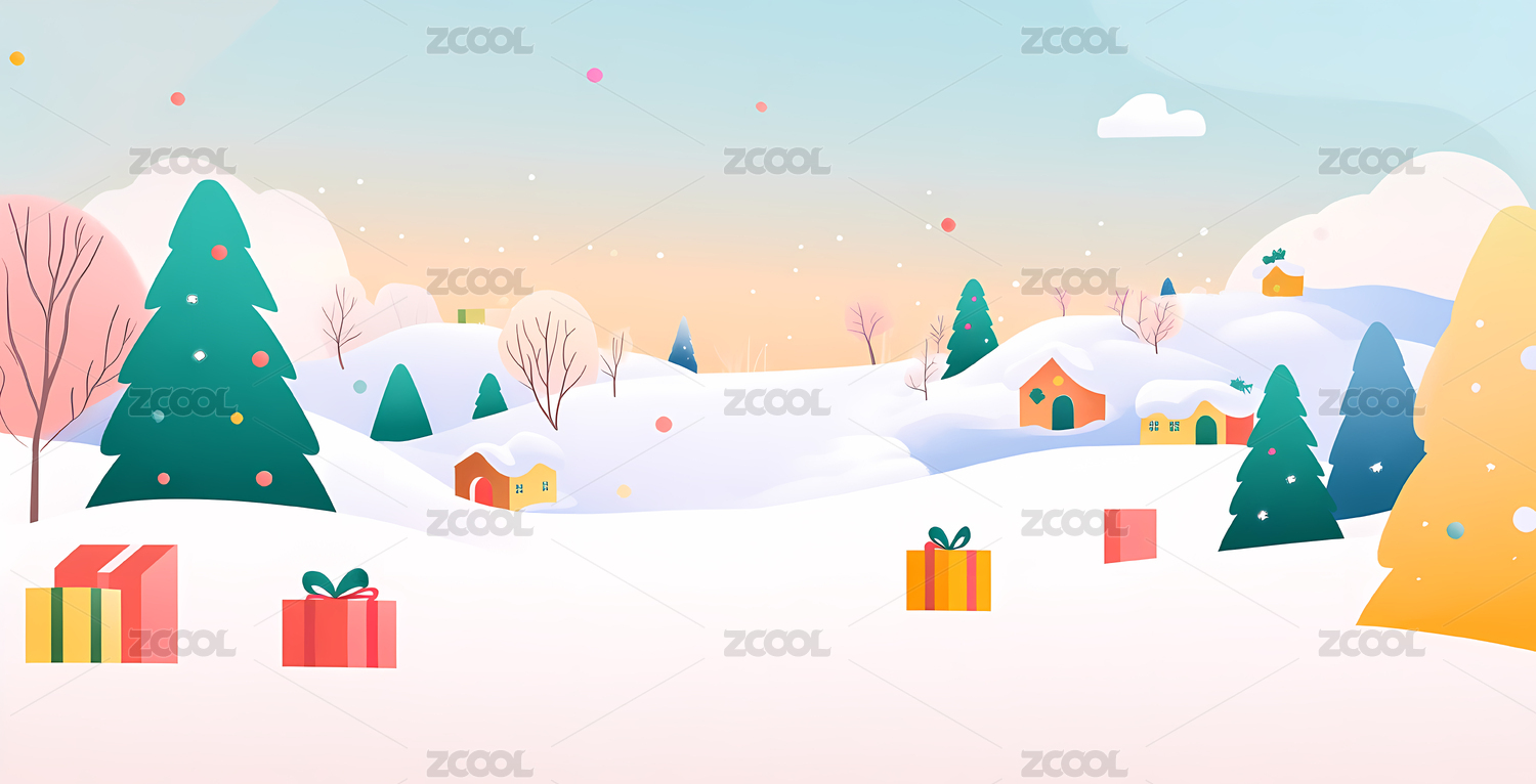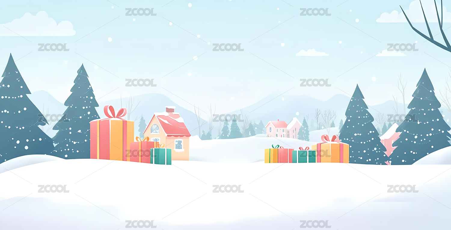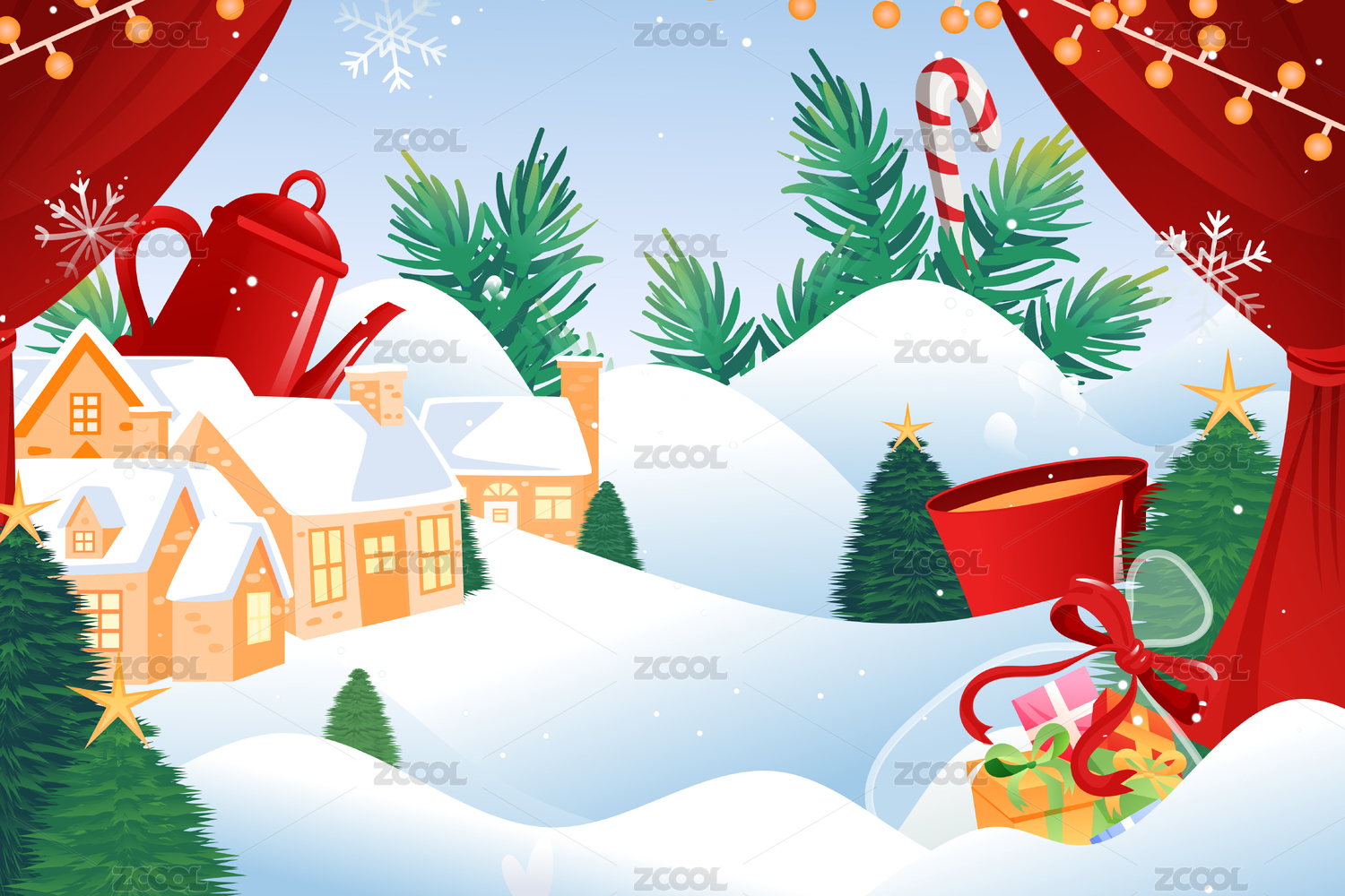 圣诞节快乐大雪节气插画冬天雪景自然海报