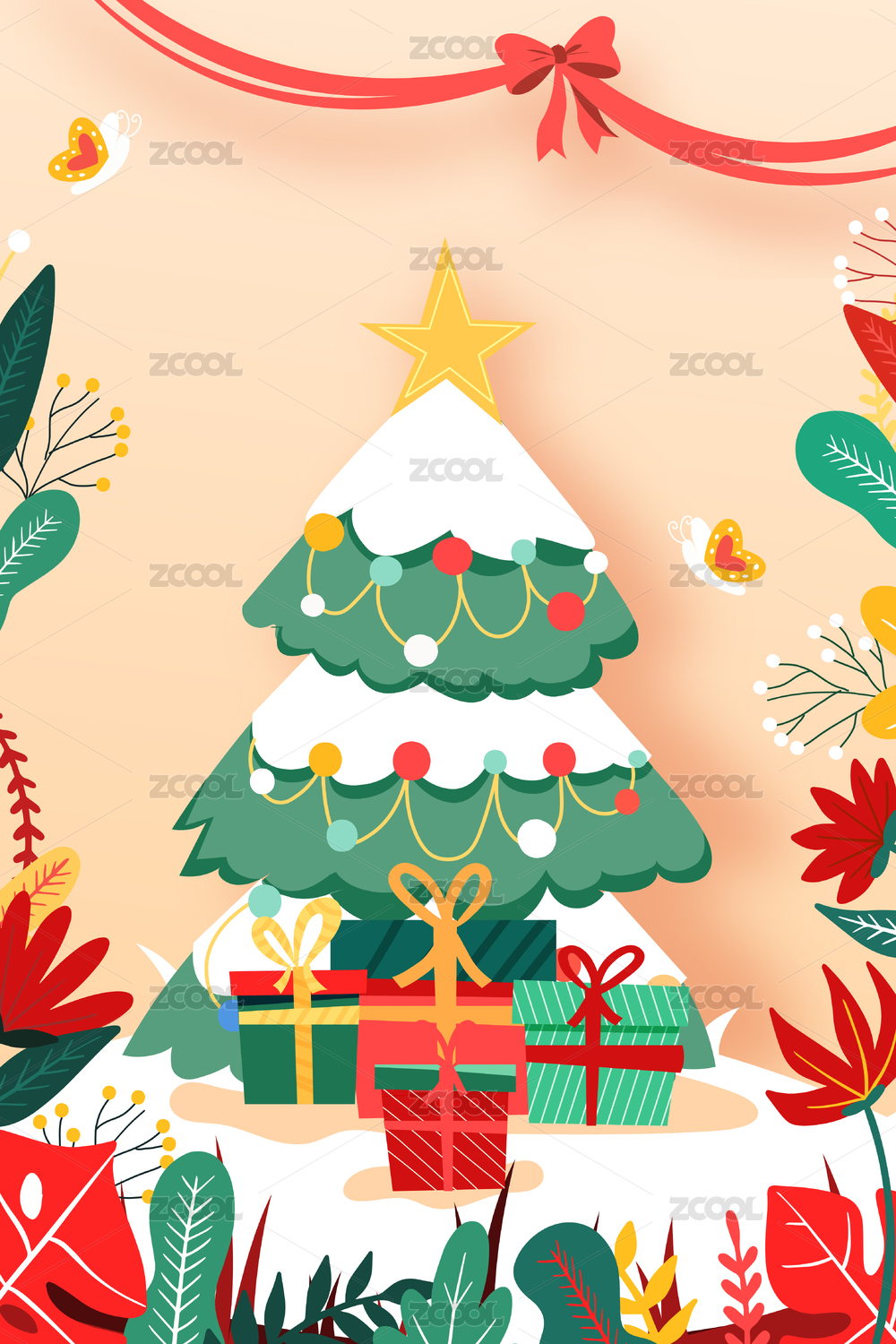 红绿橙色简约现代圣诞节节日祝福手机海报