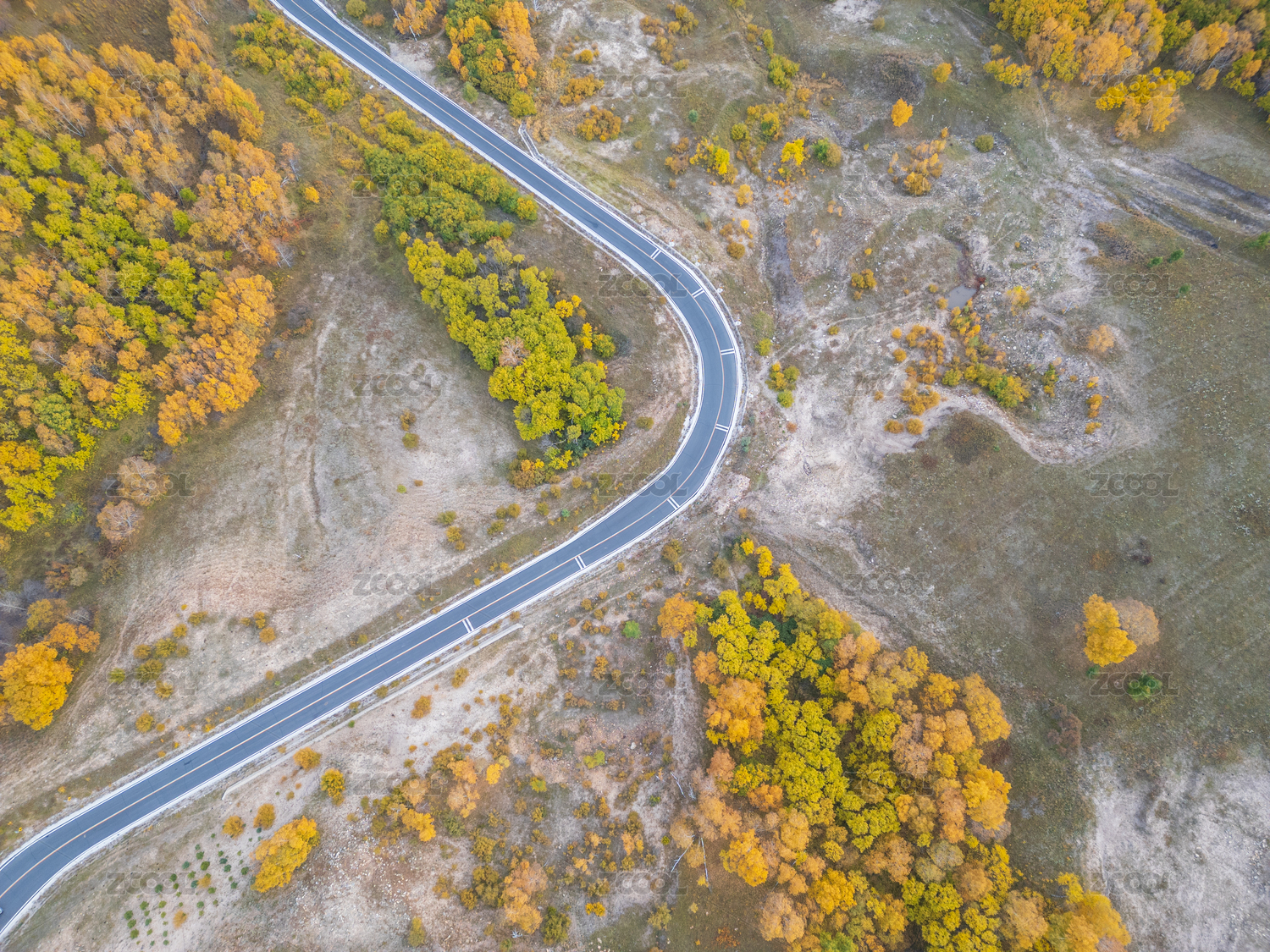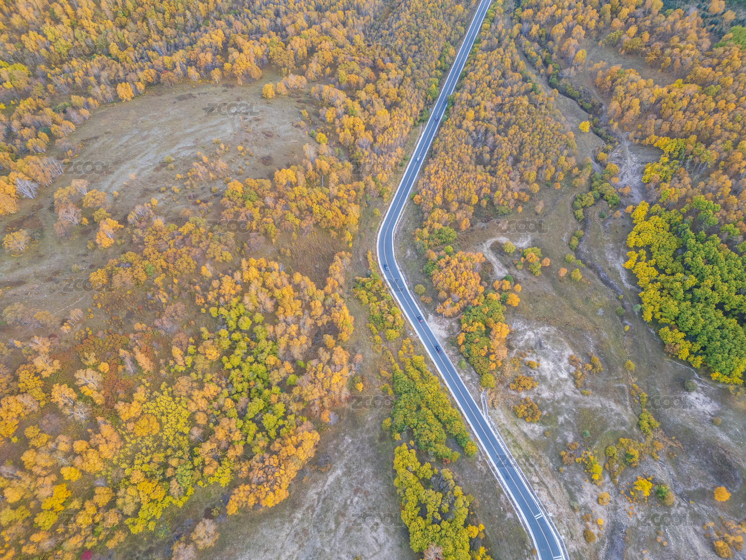 中国新疆阿勒泰禾木秋天森林公路自驾游旅行