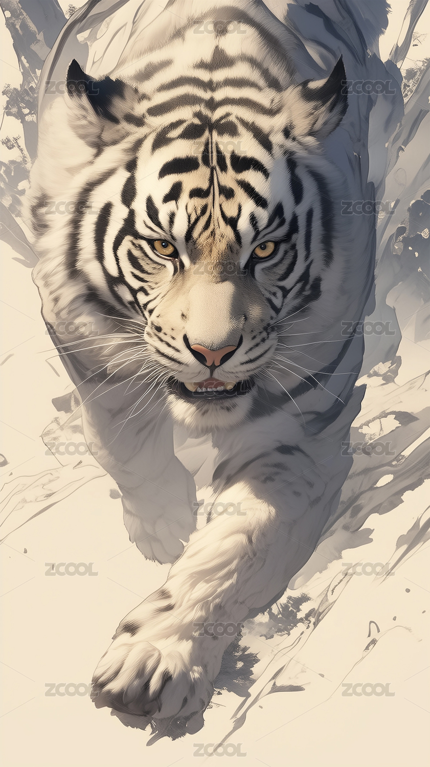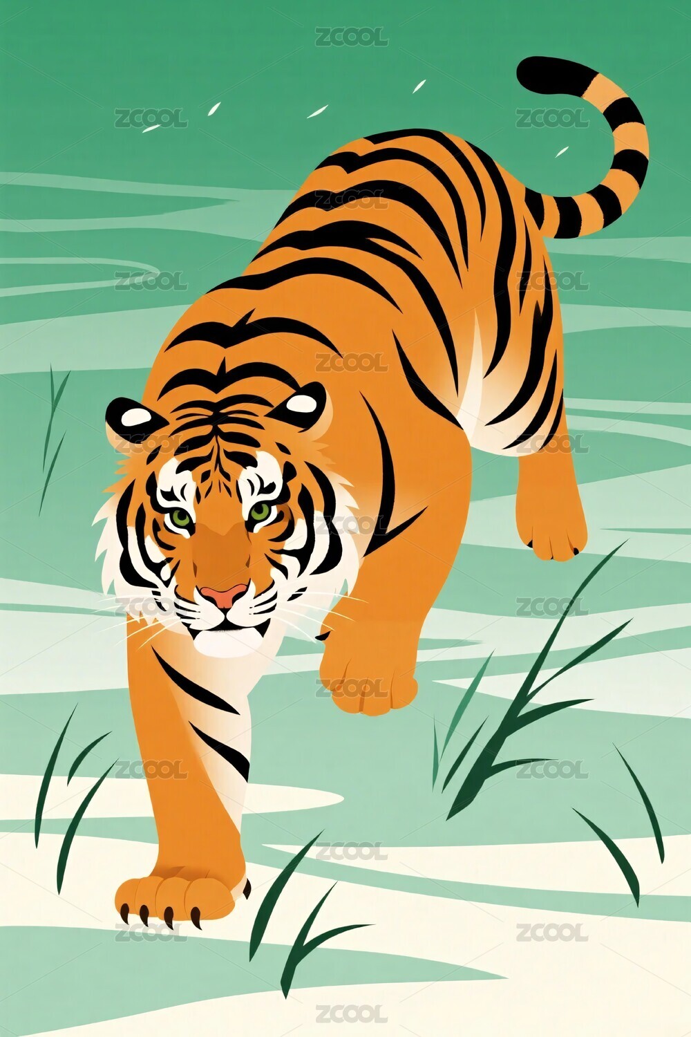 老虎,雪地,雪山,山水,动物,插画,动态,自然,猛兽,力量