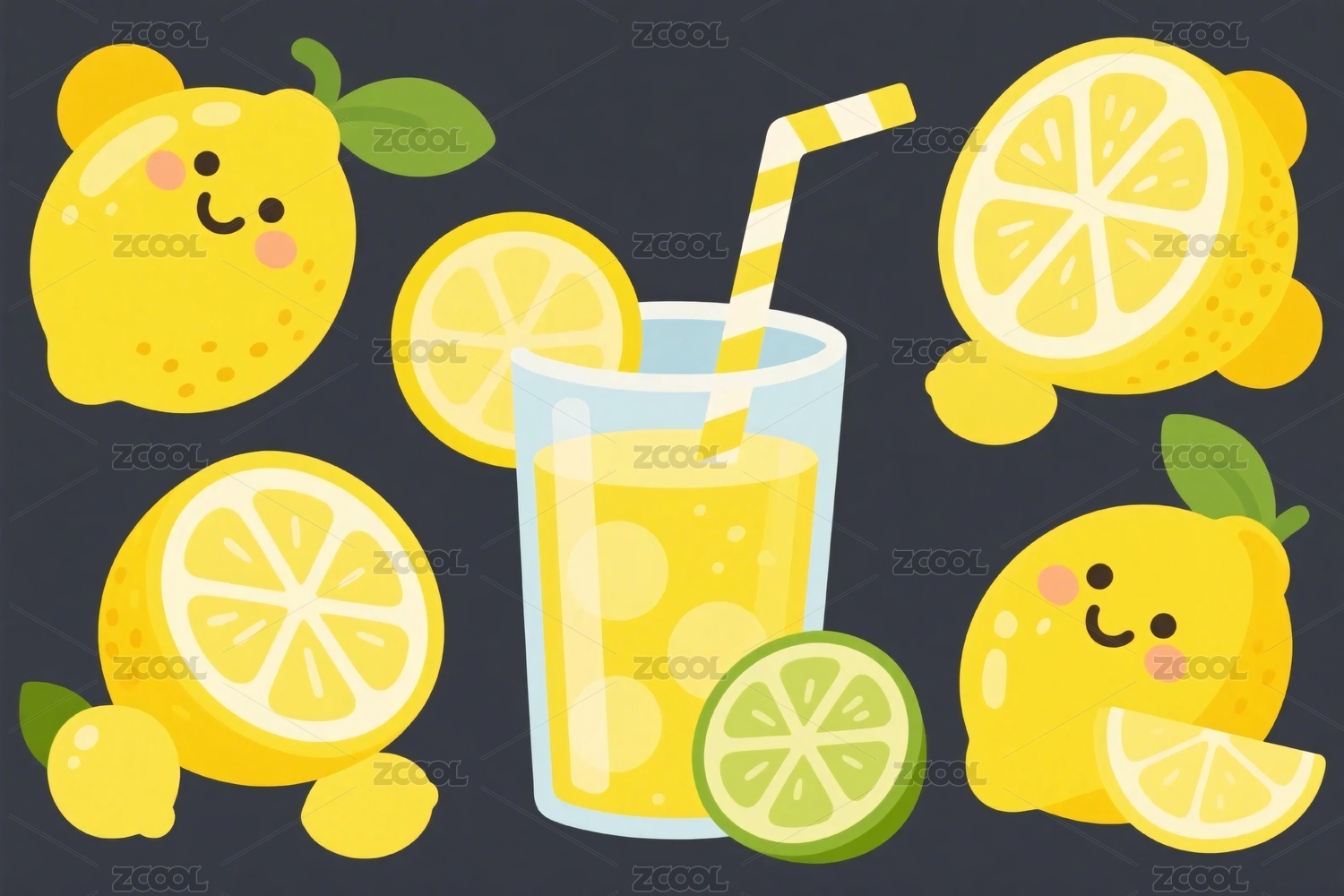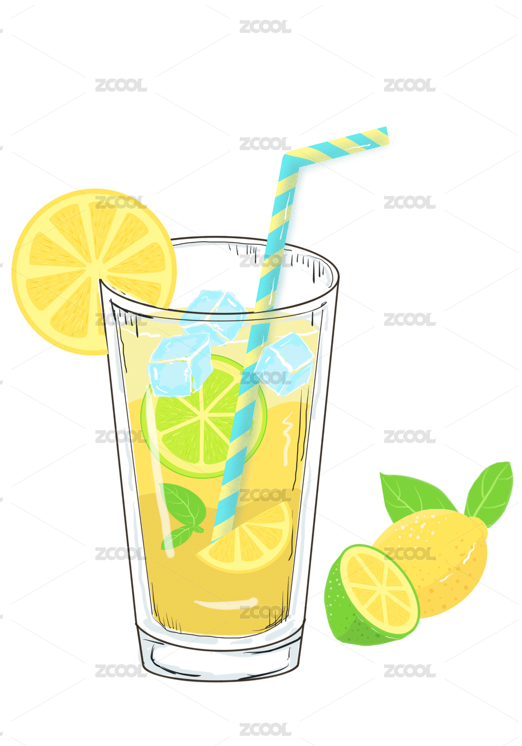 柠檬,饮品,杯子,蜂蜜,柠檬片,插画,模板,清爽,水果,甜饮
