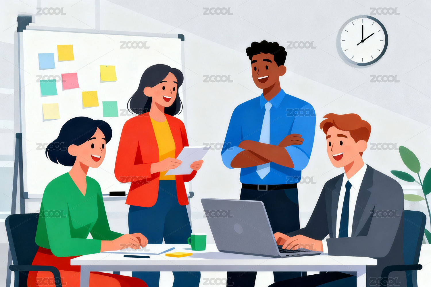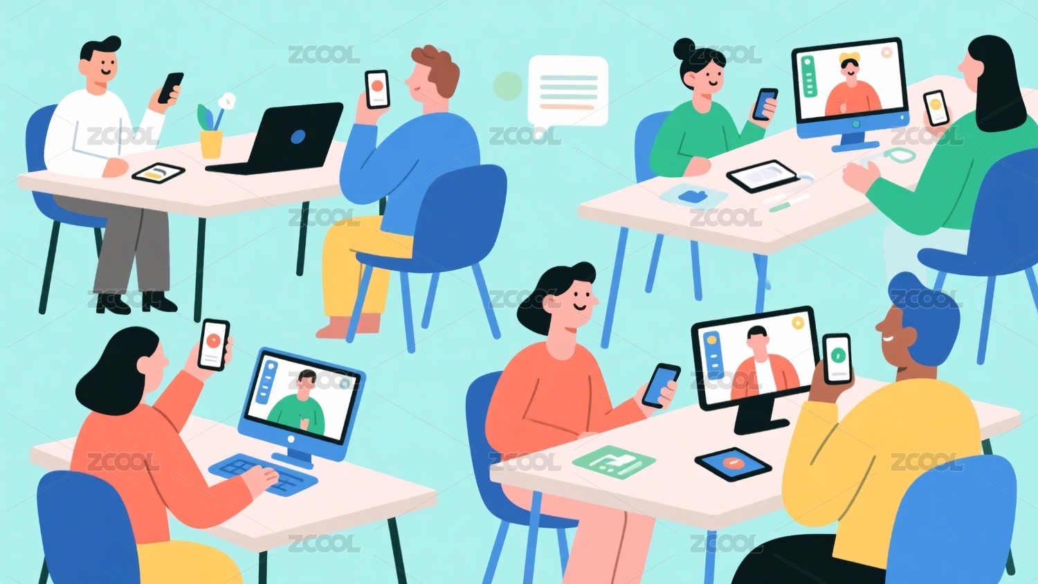 视频通话,会议,办公,团队,插画,人物,协作,沟通,商务,职场