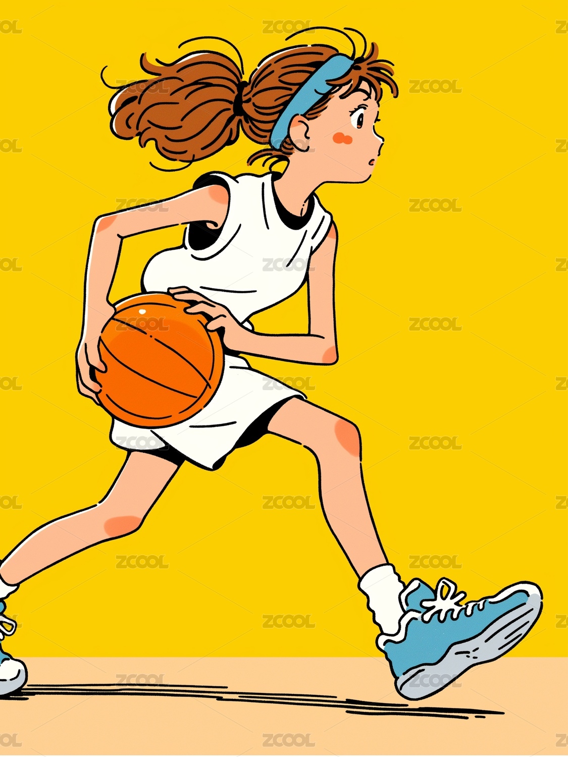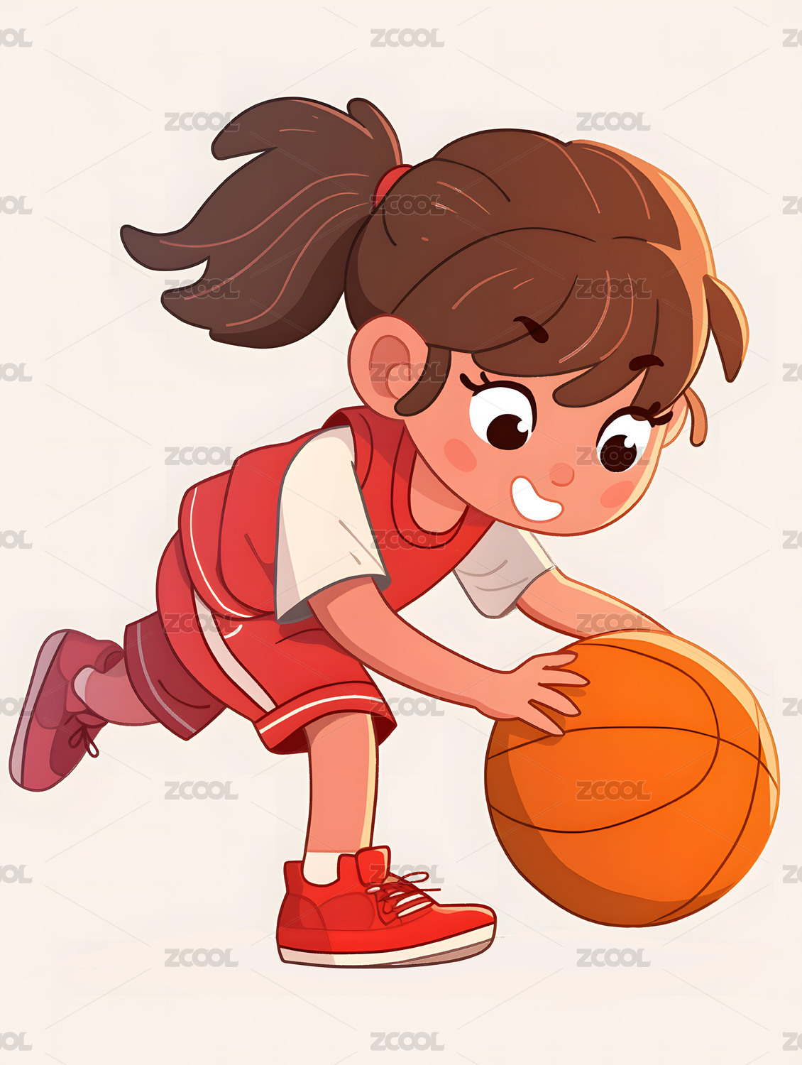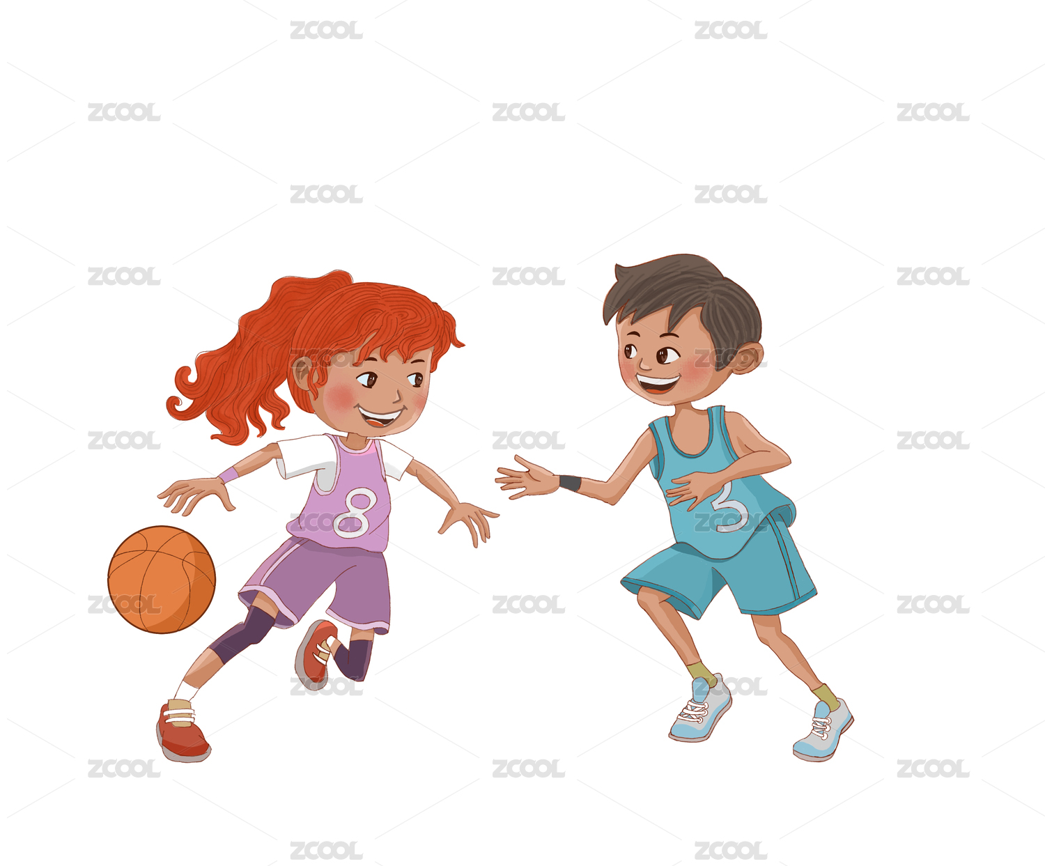 篮球,卡通,人物,女孩,运动,儿童,篮球架,篮球场,插画,模板