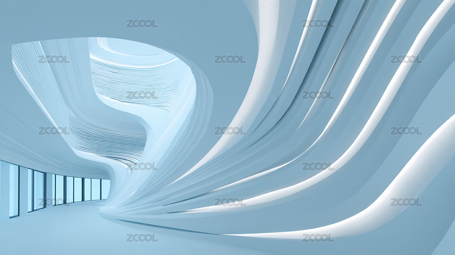 蓝色波浪形抽象空间