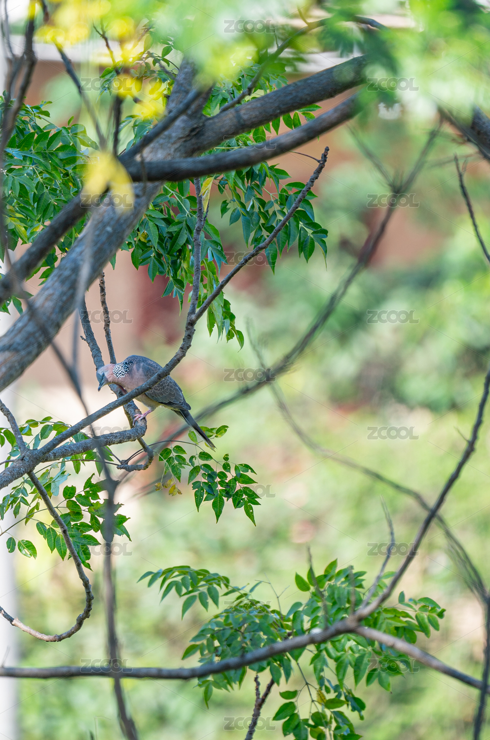 中国广西南宁乡村珠颈斑鸠野生动物鸟类