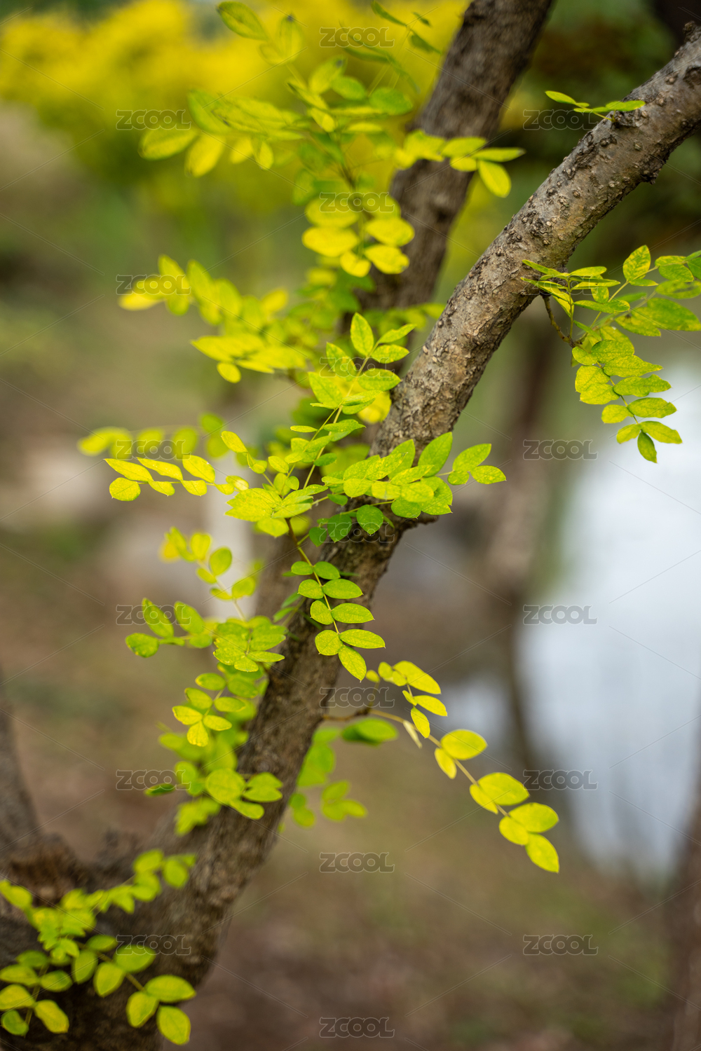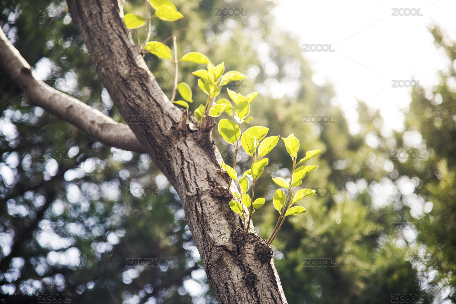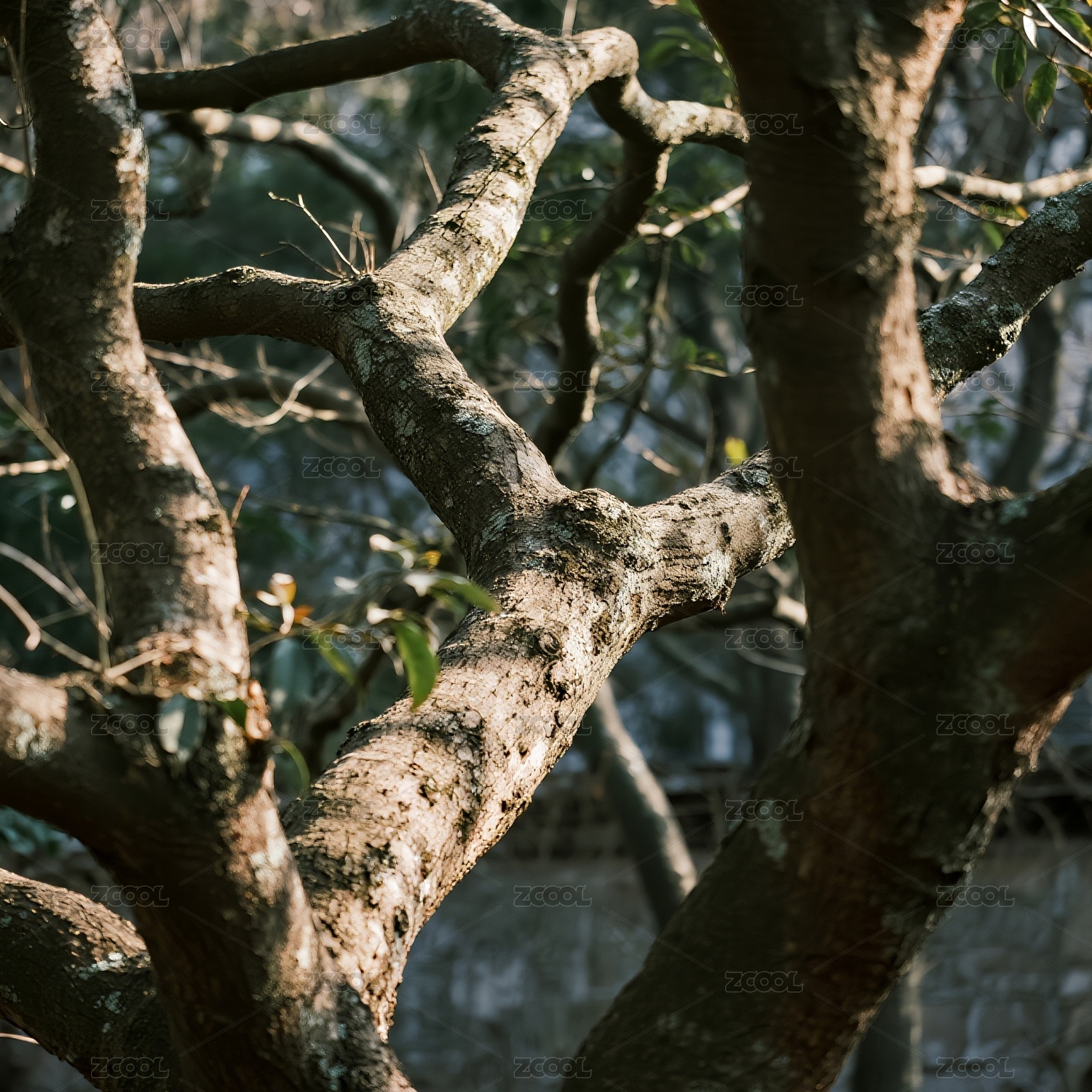 老树,树干,绿叶,阳光,石墙,树枝,植物,生机,自然,背景虚化