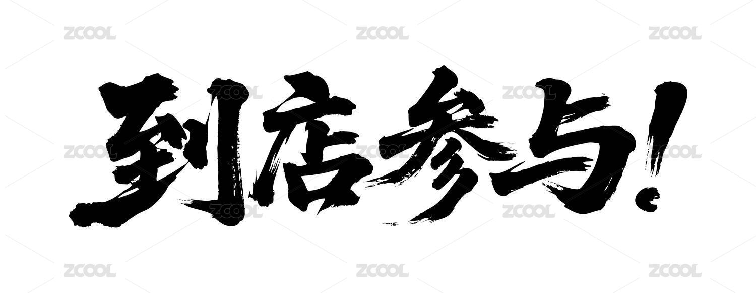 到店参与矢量书法手写毛笔字