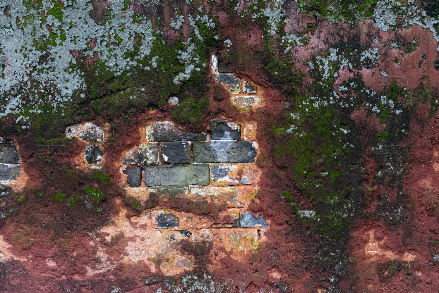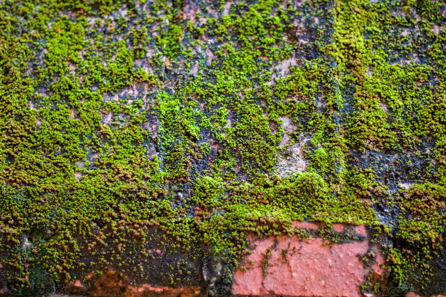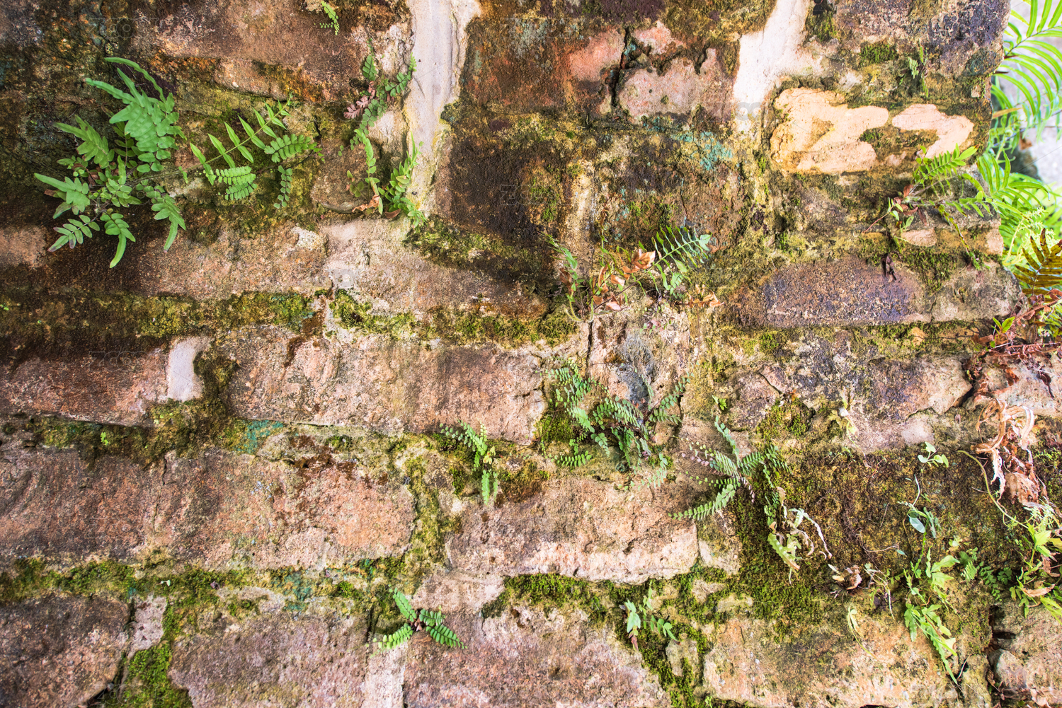 红砖缝隙的苔藓